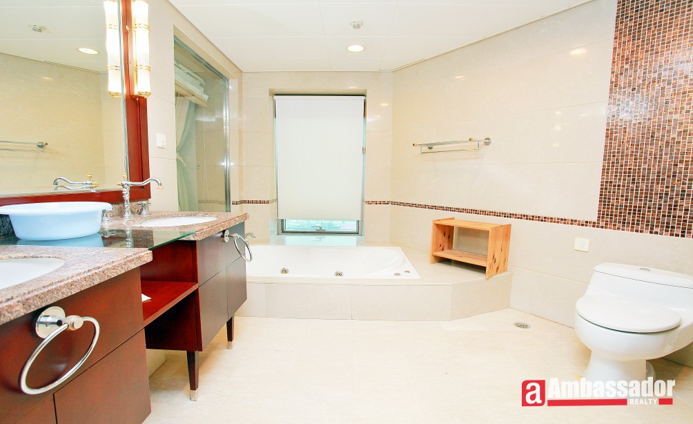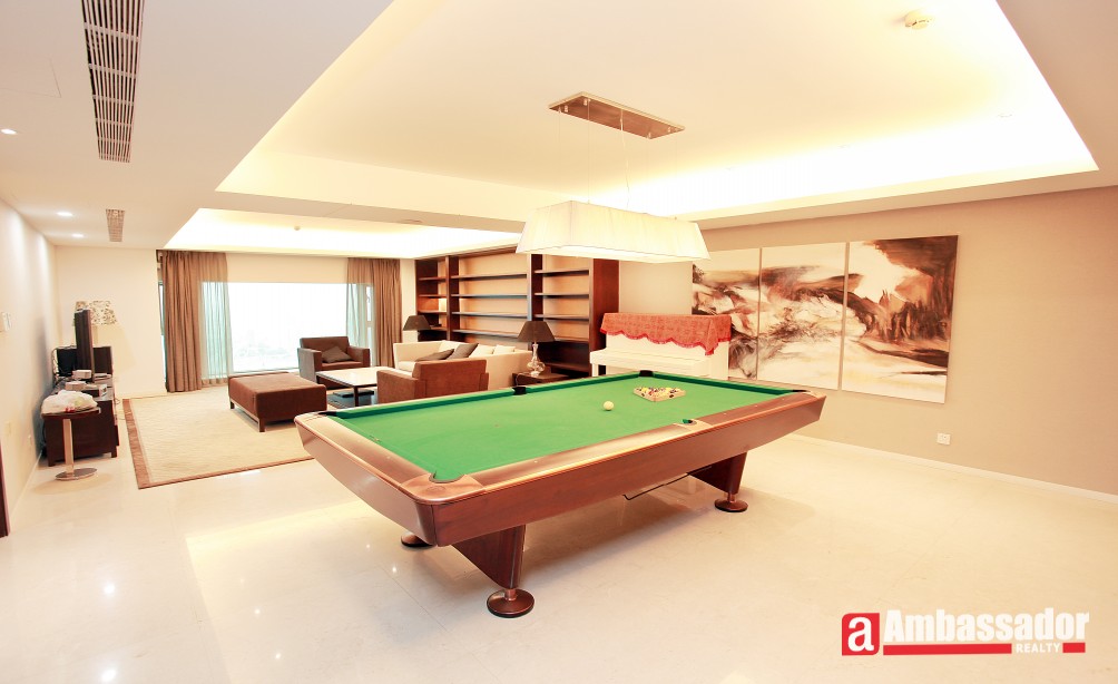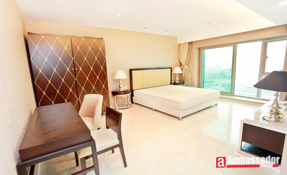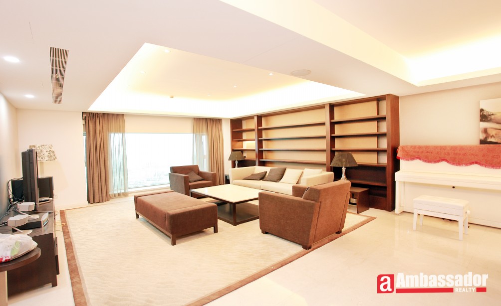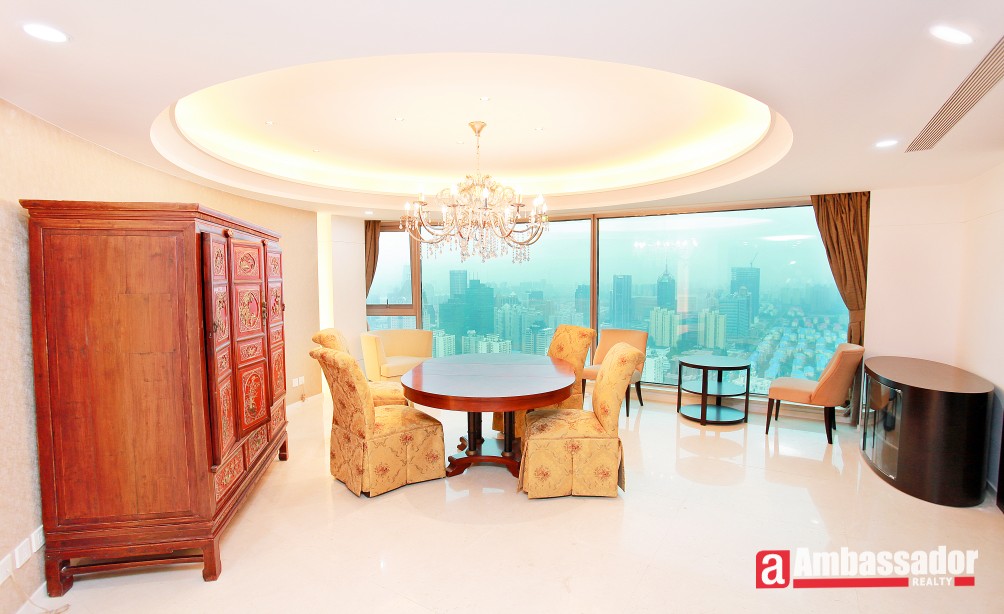 This is a fabulous four bedroom fifty-sixth floor apartment that boasts spacious living and entertaining space, fantasic overview of the Huangpu River and stylish interior decoration. The residential community offers horticultural gardens, jogging path and parking area.