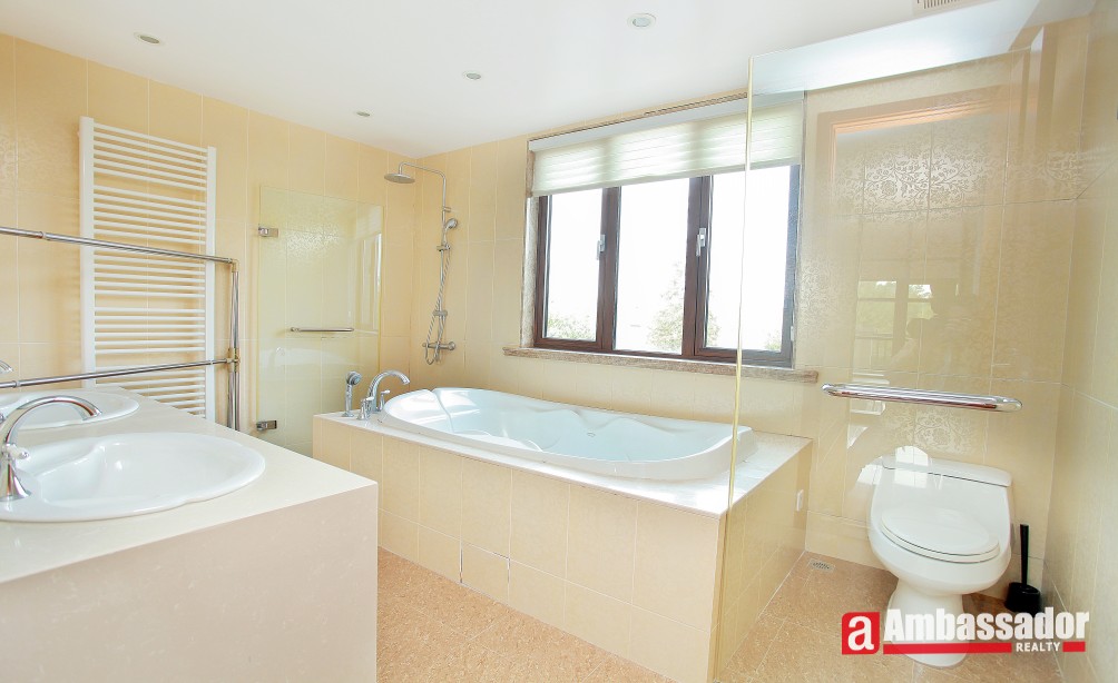 A nice detached house will arrange ample living space, clean and tidy kitchen equipped with high quality appliances, bright dinning room and 4 generous bedrooms. Large floor to ceiling windows are equipped in the living area, through that a nice and well manicured garden comes into your eye.