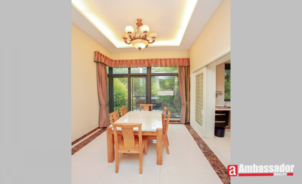 Located in Minhang, this amazing house in the Jinfeng International Community is always popular among expats and their families. The high standard and elegant wooden furnishings decorated in this house, creates a natural feeling, combining the beautiful garden outside the house, which brings the best in each other. The large kitchen is fully of Western styled appliances, which easily meets residents’ cooking demands.