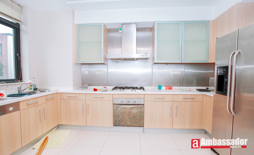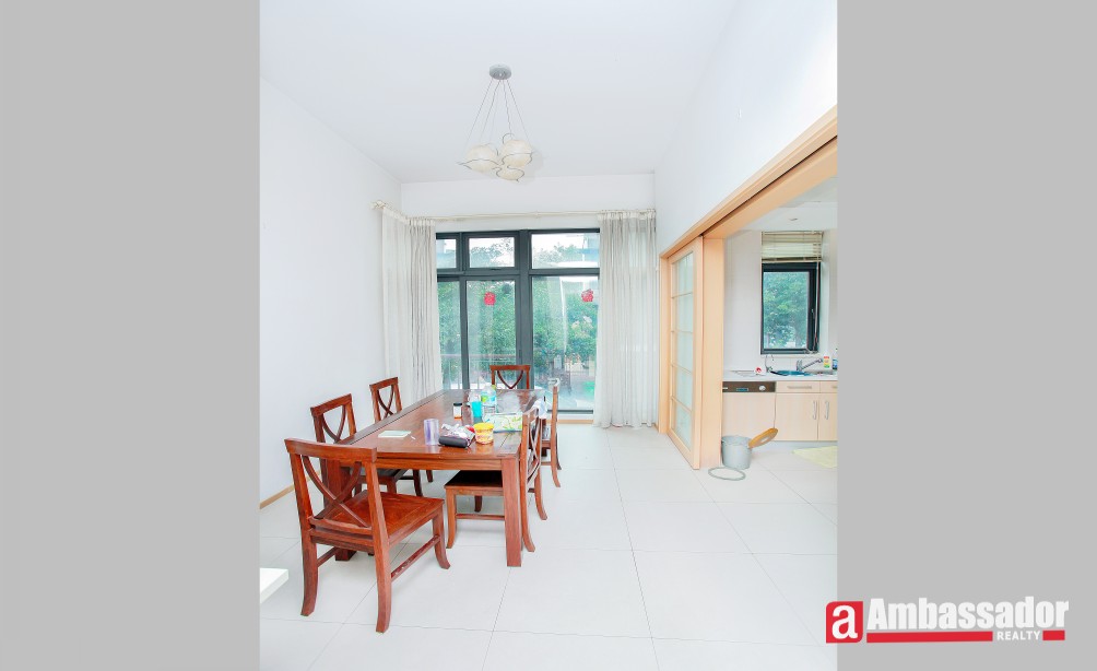 A well-proportioned villa in Minhang, adjacent to Shanghai American School, and surrounded by large area of green, is ideal to those family with children. Looking through the floor to ceiling window in the bright and airy living room, a large and beautiful garden comes into your eye. A stone’s away from the dinning area, there is a generous open kitchen equipped with all kinds of high-end appliances. Wall heating is available in this wonderful house to make temperature toasty.