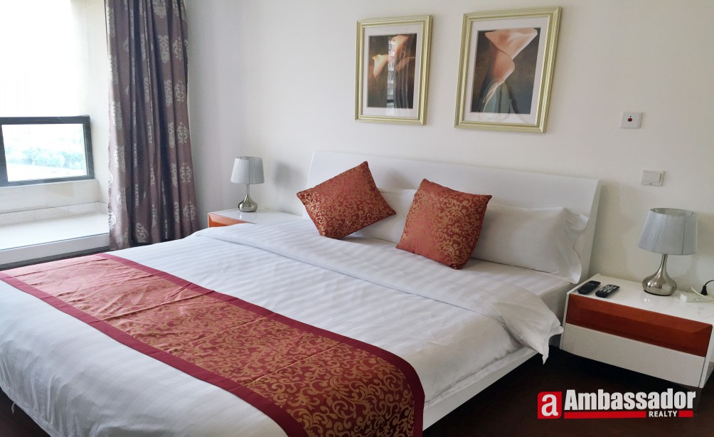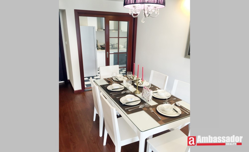 This serviced apartment located in Jing An District is operated by a smart property management who provides comprehensive service to make sure residents a cozy and comfortable life in Shanghai. Bright living room connecting to a large sunny balcony brings warm and homey feel. It can’t be more enjoyable to curl up on the soft fabric sofa and bath in the sunlight. A large dinning area is just outside the clean and fully equipped kitchen. Generous bedrooms are furnished with nice bedding.