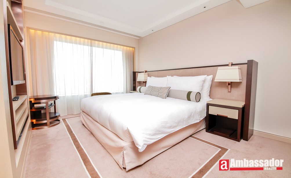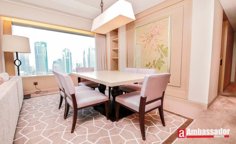 Well design serviced apartment located in Lujiazui, Shanghai offers exceptional facilities including 24-hour security and CCTV system, fully equipped gym, heated swimming pool, etc. It provides comfortable and elegant furniture used in each room and soft carpet covered. Magnificent view of Huangpu River or landscape can be see through the French window in the spacious living room. Exquisite marble counter and selected appliance are available in the open kitchen. All the three rooms are placed soft beds, bring you a joyous sleeping time.