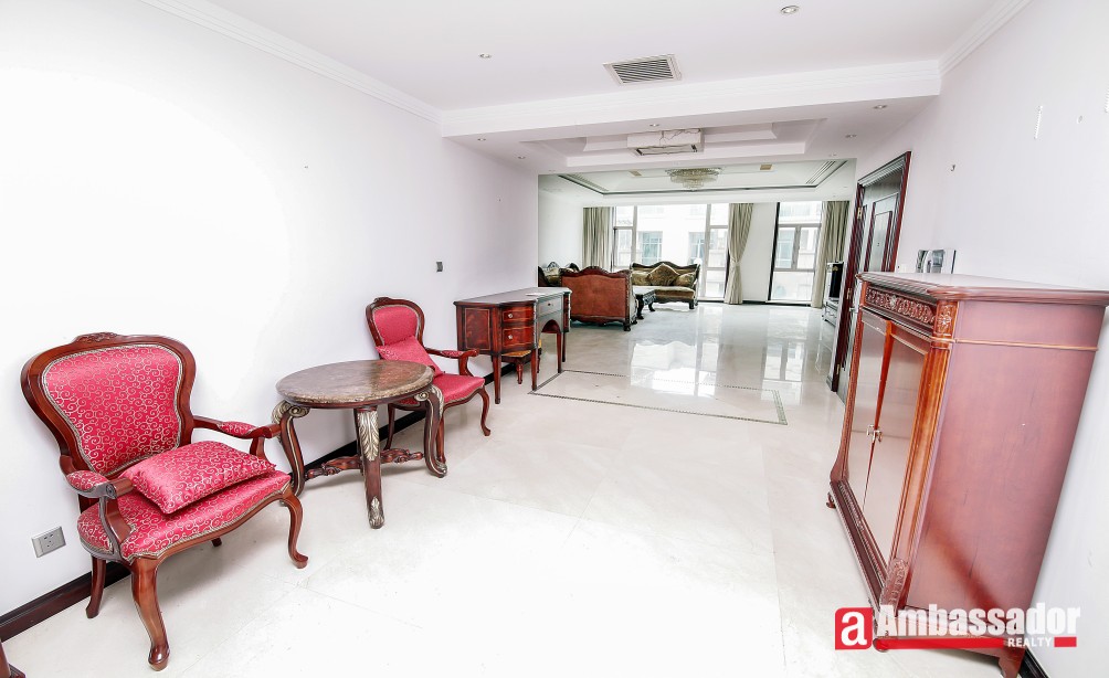 A bright and airy apartment with 4 bedrooms provides a spacious living area with French window, western styled appliance equipped kitchen, tub available bathrom and fully furnished by elegant and high quality furniture. The greatest highlight in this apartment has be the huge balcony with sunshine pouring down through nice skylight. Life amenities in this compound are abundant.