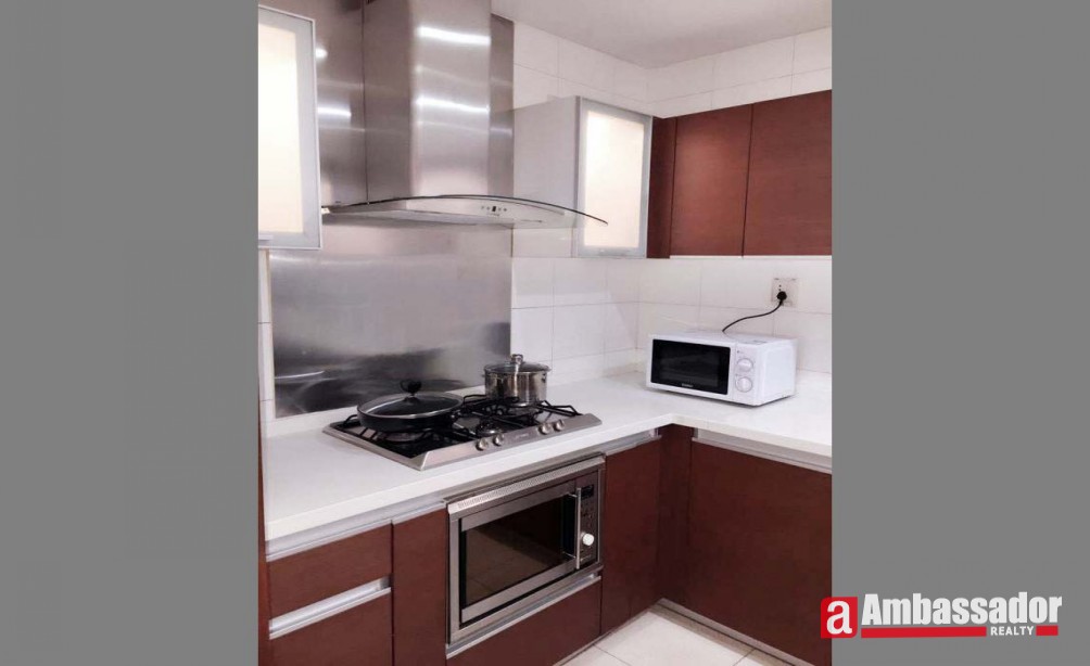 A fantastic apartment with 3 bedrooms in provides tenants with a comfortable life. Spacious living room with a dinning area connected to the large balcony, with sunlight steaming through the french window, it is warm and sunny. Furnished by elegant furniture and high end appliance, life quality here could be high. Standing on the balcony, you can take a panoramic view of lush green in the residence.