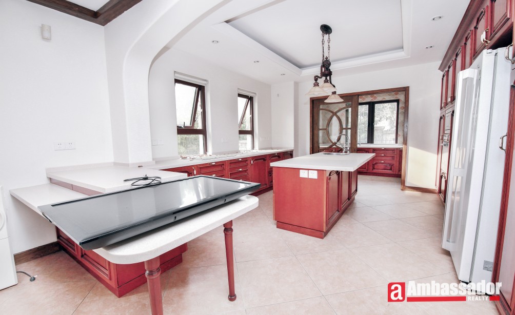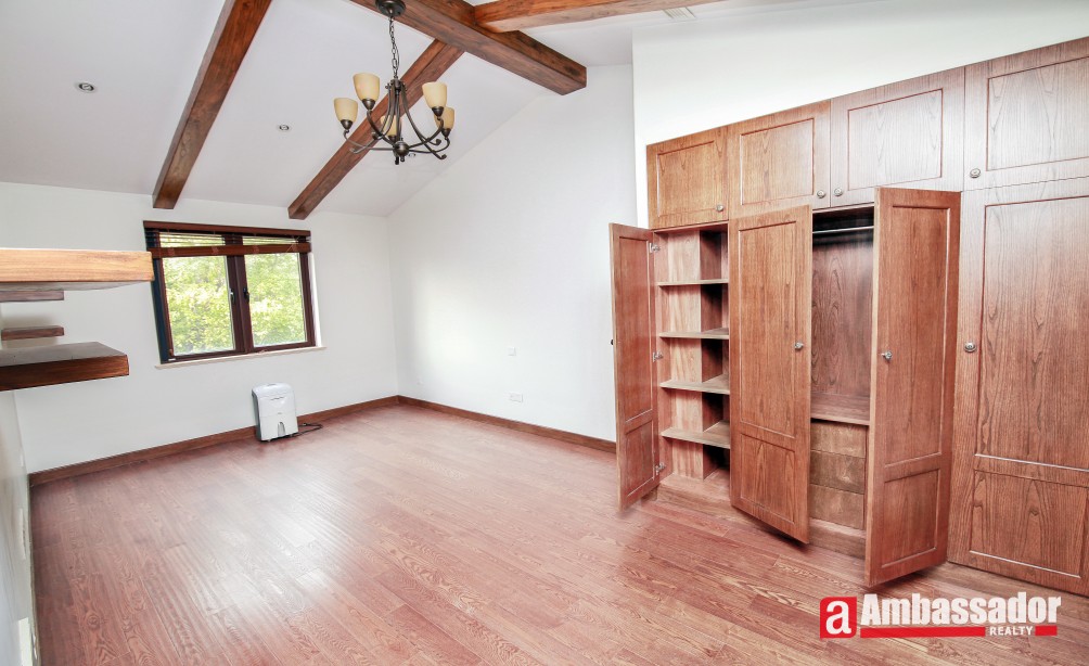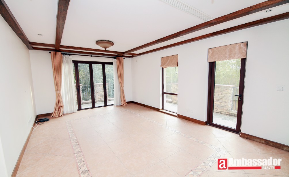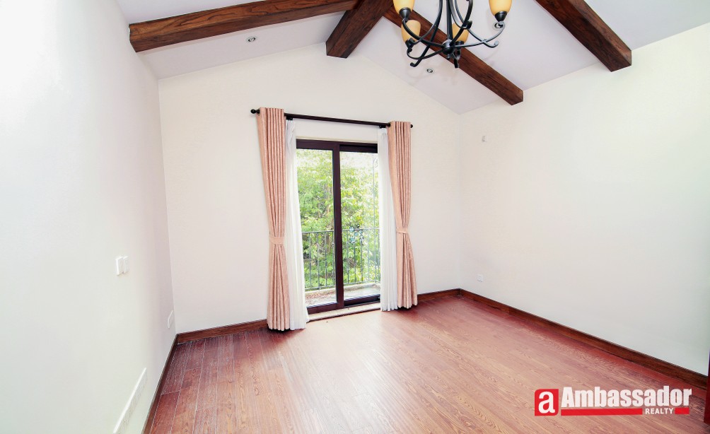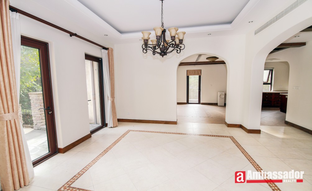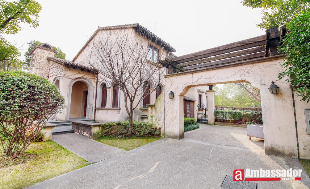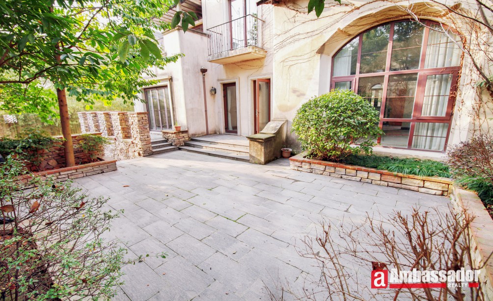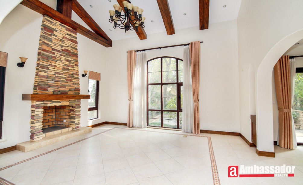 An amazing villa with 4 bedrooms in Minhang District has easy access to international school. It’s a villa full of artistic feel with special designed brick wall, exposed beams, and more. Through French doors and window, sunshine casting down brings bright and warmth, boasting a homey feel. Large kitchen fully equipped with selected appliance is with a dinning bar in. Life facilities in this wonderful compound is abundant.