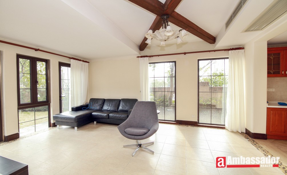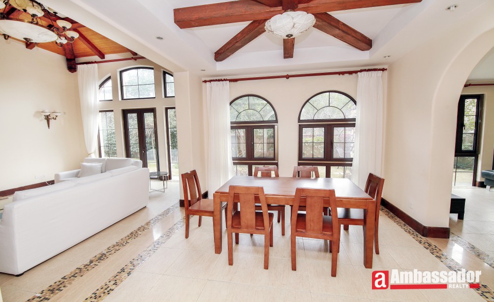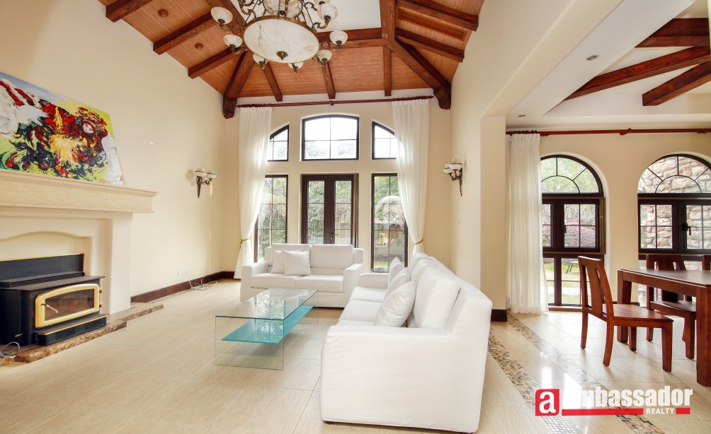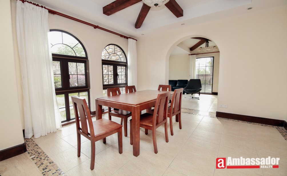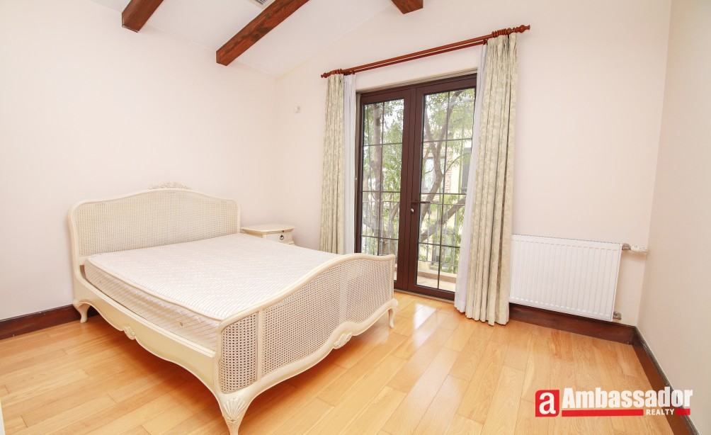 A 4 bedrooms villa with superbly high ceiling provides bright and airy interiors. Elegant decoration and stylish furniture of high quality makes life here cozy and comfortable. Light pours into through the glass walls and is reflected off the marble floor and white walls. A manicured garden available offers nice place for entertainment and beautiful view all through a year.