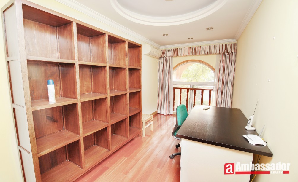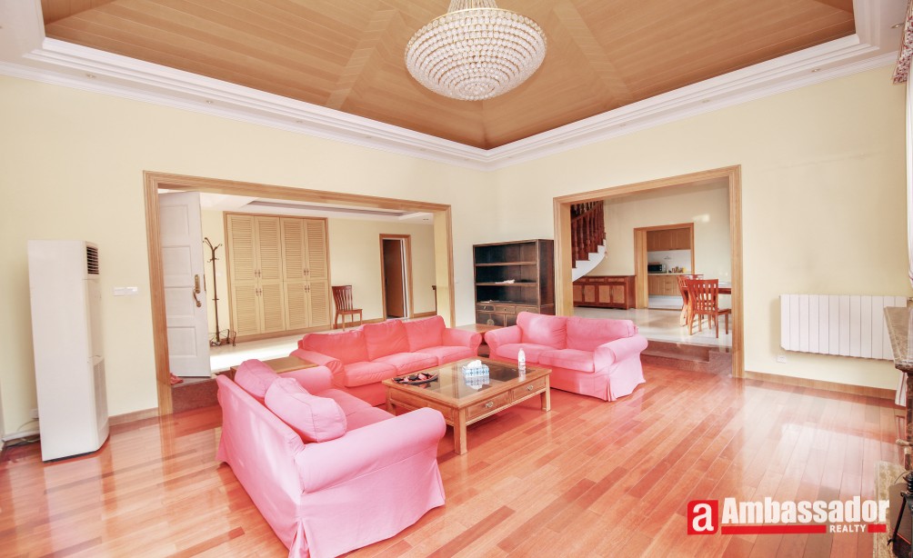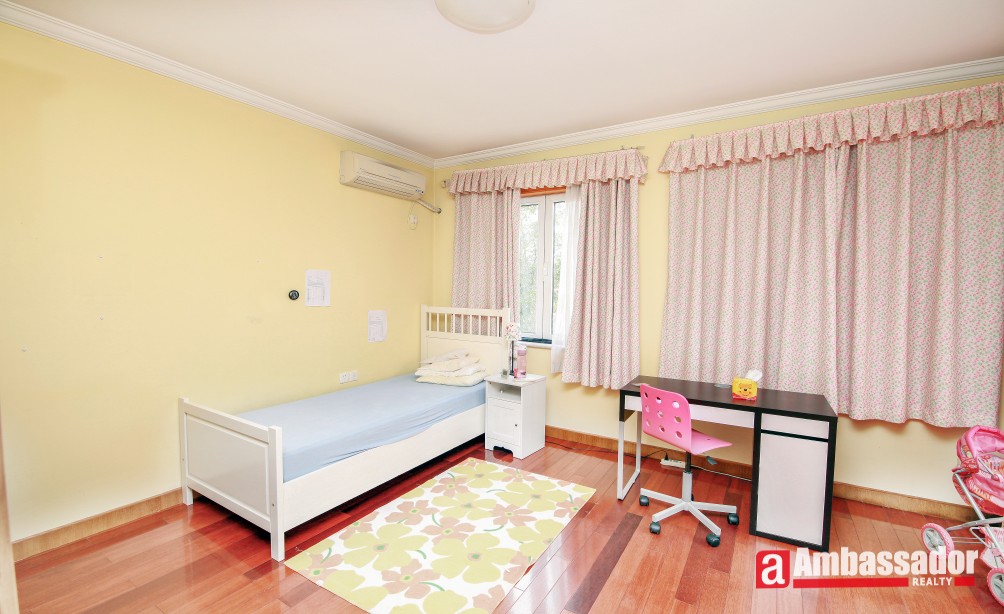 A stunning villa shares nice layouts and well proportioned rooms with elegant and high quality furniture, pastoral styled decoration and sunlight casting down. Elegant wood flooring are covered in living room and bedrooms. Sunny dinning area is a stone throw’s away from modern kitchen. A chic study upstairs equipped with large bookshelf is bright, which is prefect for reading or working.