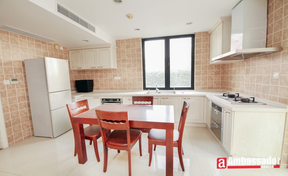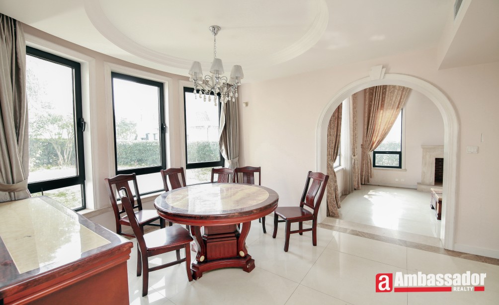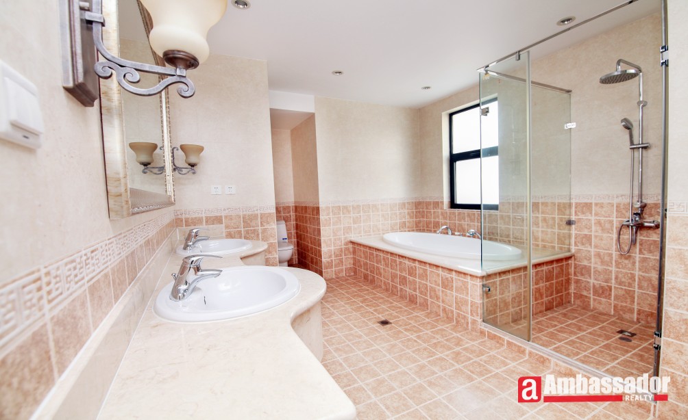 This delicate decorated villa features stylish furniture of high quality. Large kitchen with a spacious dinning area is well equipped with selected appliances. Elegant marble flooring are throughout the living rooms and kitchen. Warm sunlight casting down through windows makes bedrooms warm and bright. Large tub is available in the bathroom.