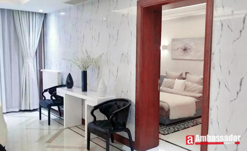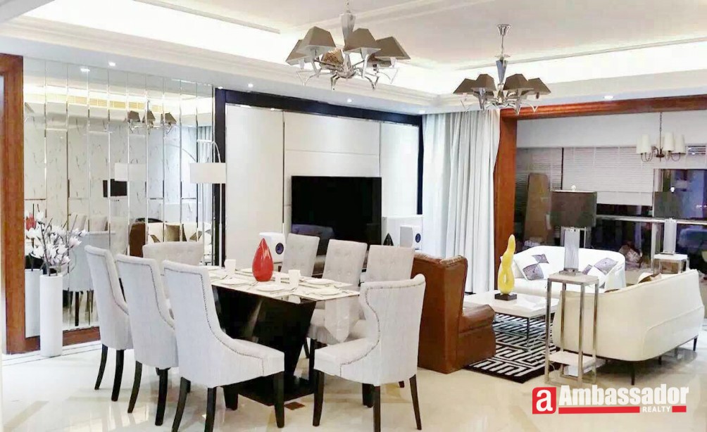 Located in Lujiazui Finance and Trade Zone, this apartment shares superb location and a wide range of excellent facilities. Bright and airy living room furnished by delicate and high level furniture connecting to a spacious and stylish dinning area. Modern furniture, marble floors and stylish chandeliers boasts an artistic feel in the space. Bedrooms are fully equipped with wonderful bedclothes, providing a comfortable and relaxing sleeping. Tub available in the bathroom makes bathing more relaxed.