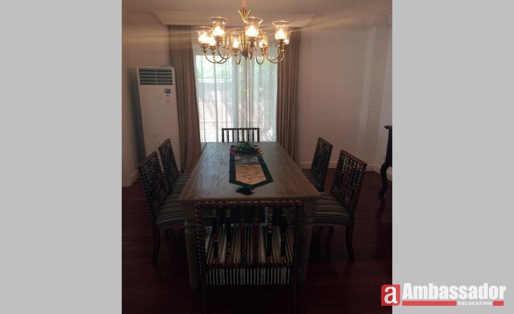 A luxurious decorated villa located in Pudong New Area with spacious 4 bedrooms. Bright and airy living room furnished by exquisite furniture and well polished wood flooring throughout. Elegant and large dinning room with glass walls facing a beautiful garden. Gorgeous bedrooms are also equipped with delicate wooden furniture. A private study is available with large bookshelf.