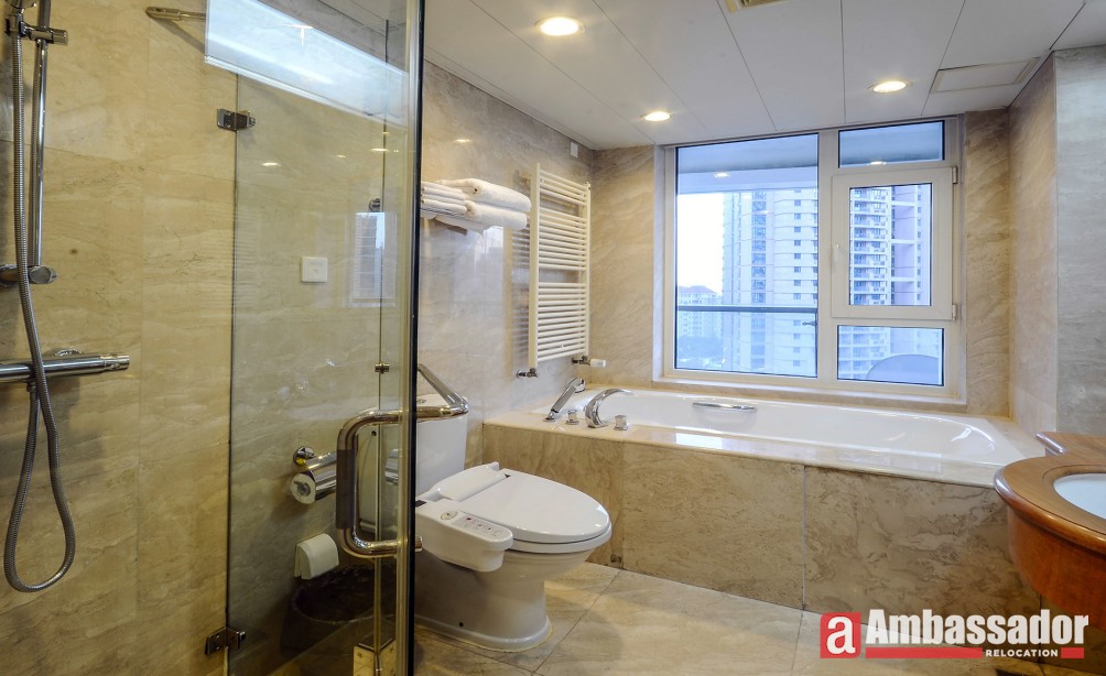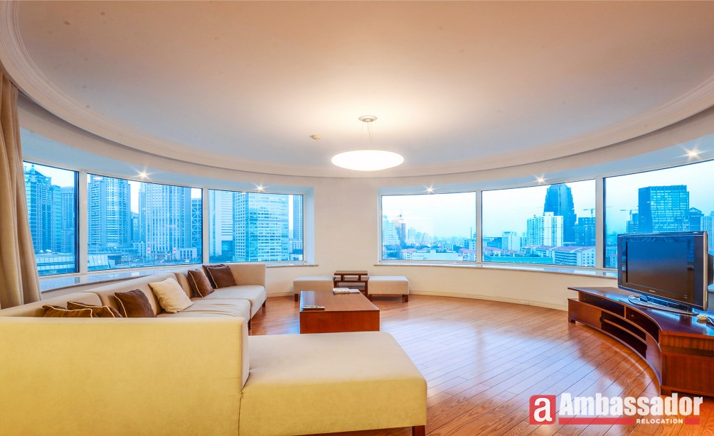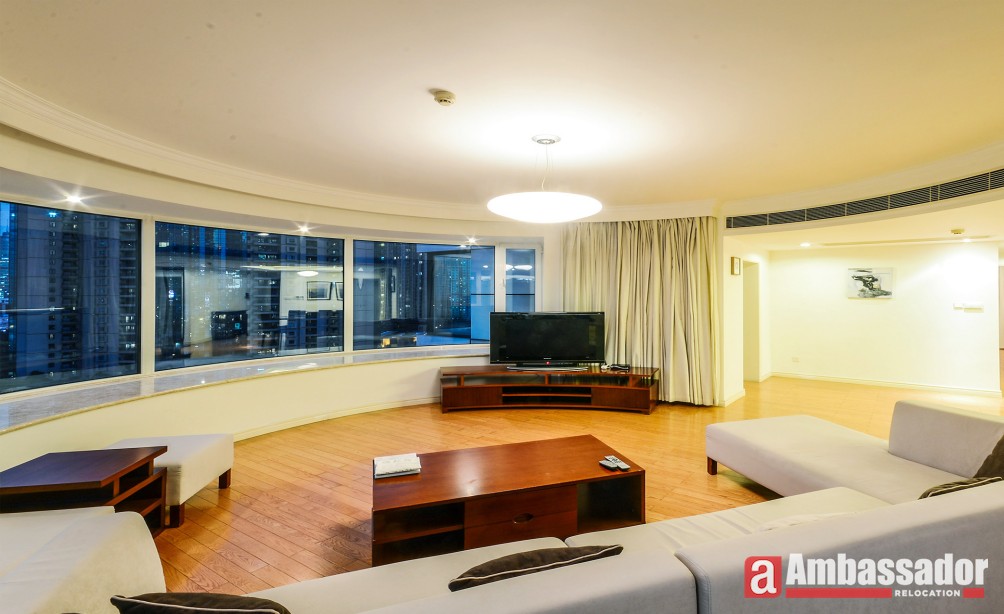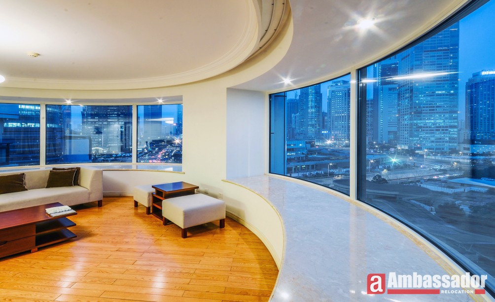 A highly luxurious apartment enjoys a superb location in Lujiazui Finance and Trade zone with a wide range of integrated facilities, near Huangpu River. Decorated high-end furniture, the spacious and airy living room looks elegant and cozy. Leaning on the bay windows, the magnificent panoramic view of Lujiazui unfold, which has to be the definite highlight of this property. The master bedrooms with large built-in wardrobe has private balcony. Well polished wood flooring spread all over the house.