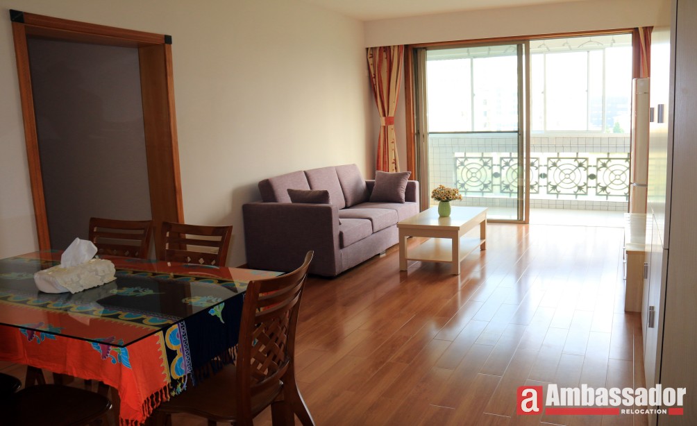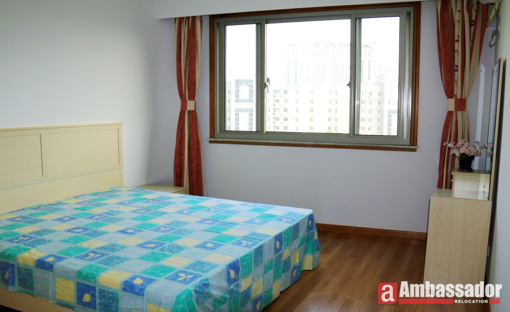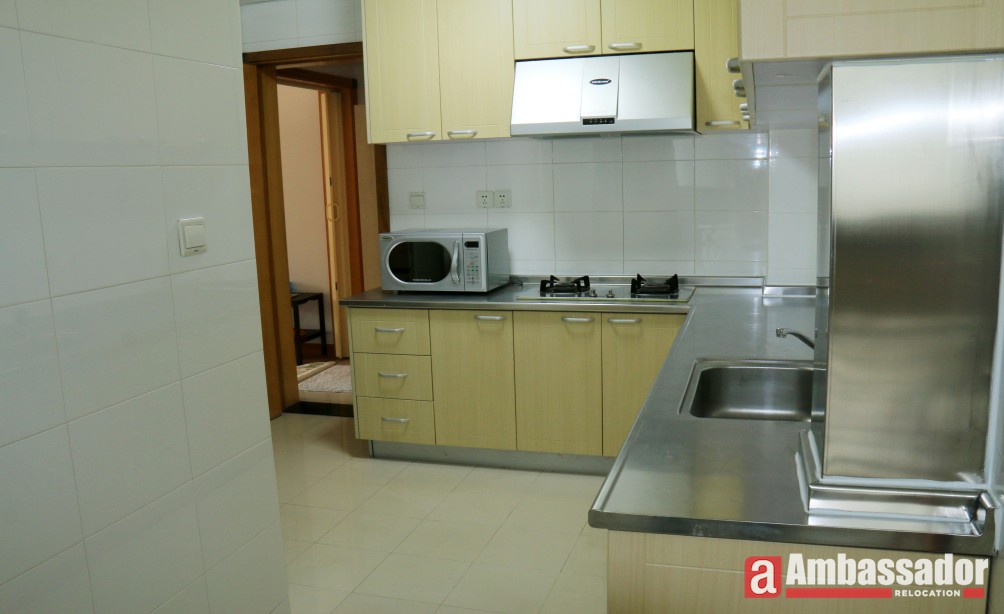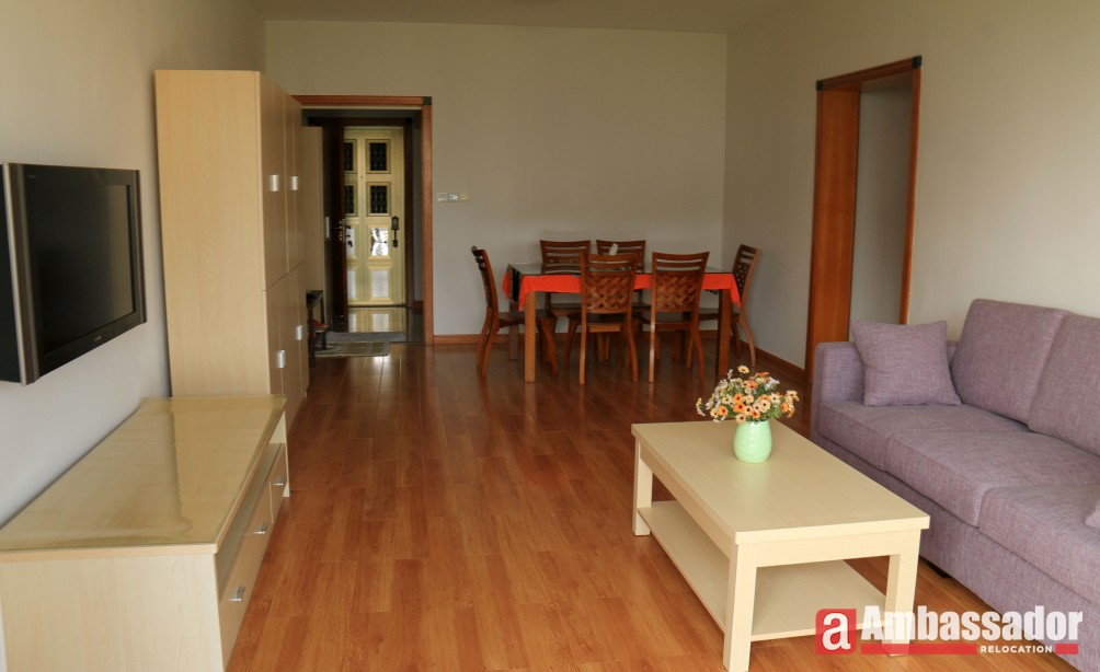 A nicely decorated apartment with 3 bedrooms offers bright and ample interiors, new and exquisite furniture and spacious living room area. With French window, warm sunlight pours into the living room and standing on the balcony next to, you can enjoy a beautiful view of lush greens in the compound. Elegant parquet flooring spread in each room. Fully equipped kitchen meets your cooking demands.