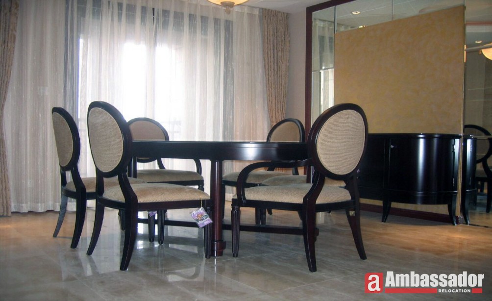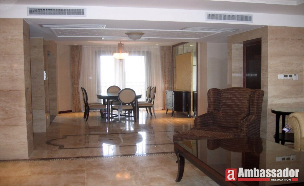 An amazing apartment located in Jinqiao, Pudong New Area features well-proportioned rooms embraces spacious and airy living room and warm dinning area with exquisite marble flooring, cool half open kitchen fully equipped by high quality appliance, well polished wooden floored bedrooms with floor to ceiling window to let sunlight poured in and large built-in wardrobe for clothing finishing. Fully furnished by elegant furniture, the apartment brings out homey and welcoming feel.