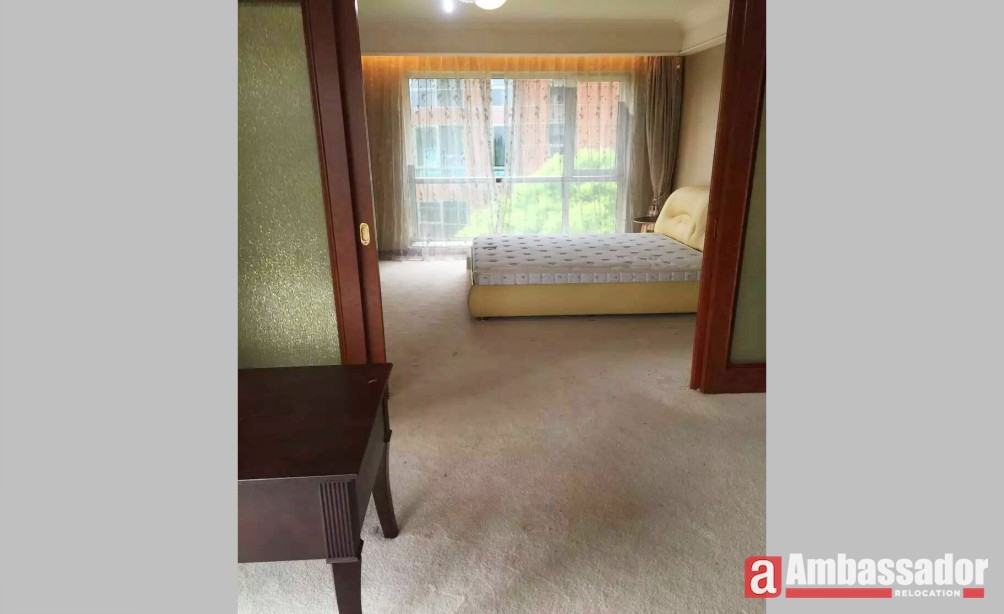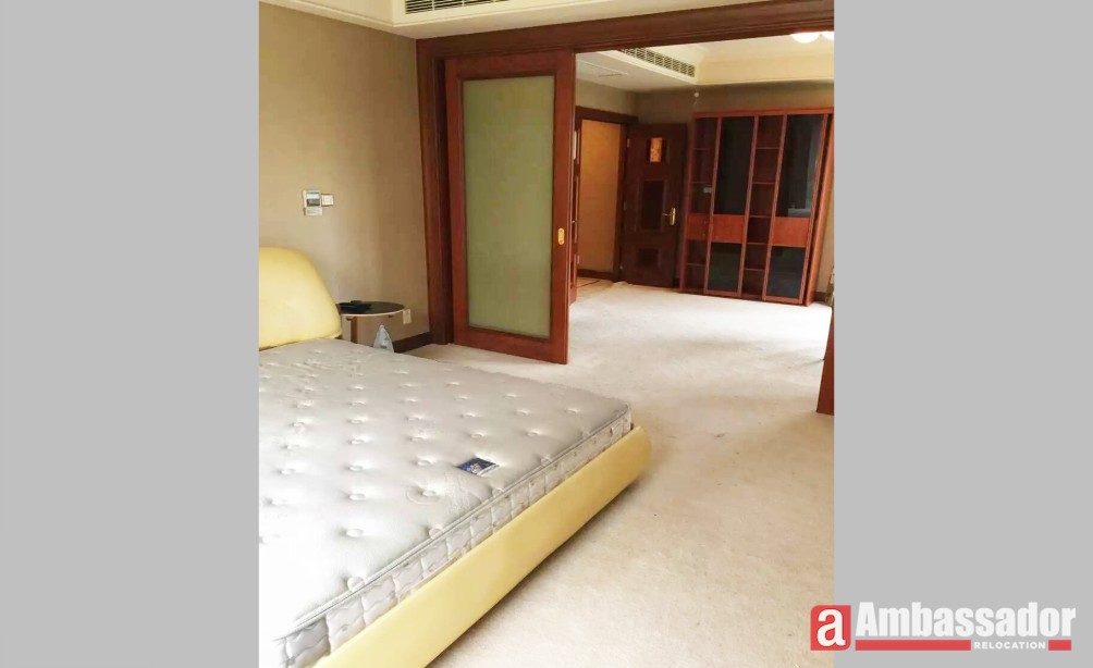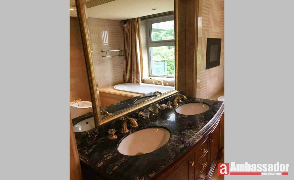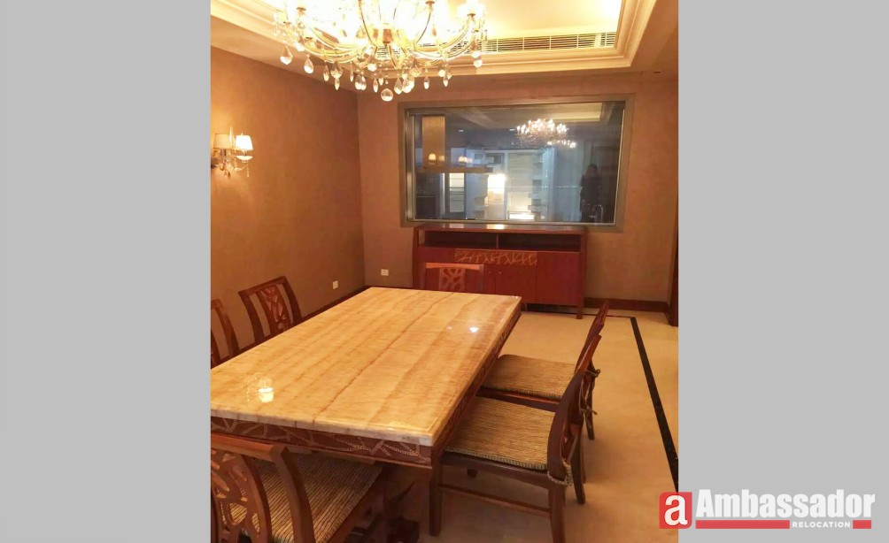 A fabulous apartment with luxurious decoration offers an enviable location close to Lujiazui where gathers the extensive range of shops, restaurants and bars. Bedrooms are covered by soft carpet, stepping on that, you feel warm and comfortable. Welcoming and inviting dining area is furnished by classic and elegant furniture showing homey and warm under the yellow light. Bathroom decorated with exquisite marble sink looks elegant.