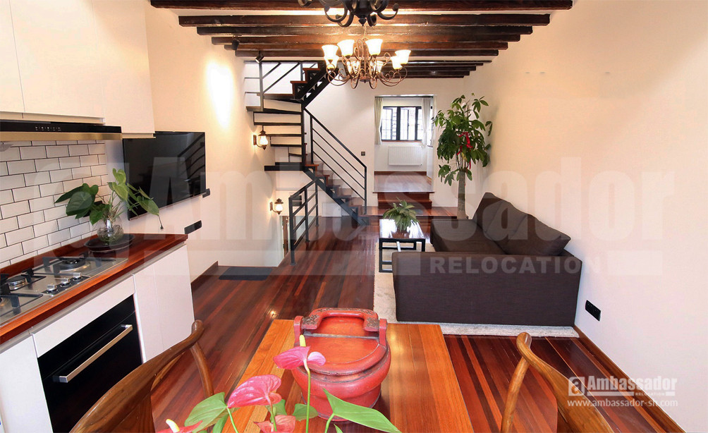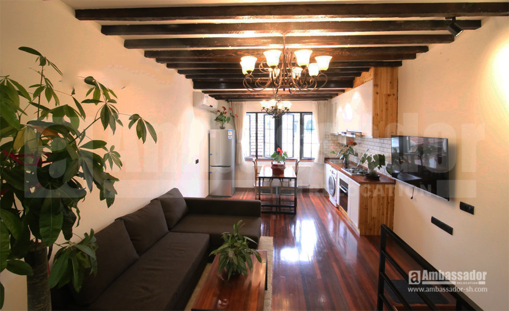 Located on West Jianguo Road, the house is surrounded by heritage architecture. Elegant fabric sofa is comfortable to rest and easy to clean up. Welcoming open kitchen is furnished by high quality appliance. Standing on the spacious balcony and having a outlook, you can have a panoramic view of azure sky, red tiles, green trees and yellow walls. And also, it’s a good choice to have a cup of coffee in a lazy afternoon.