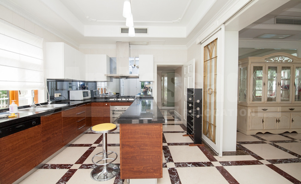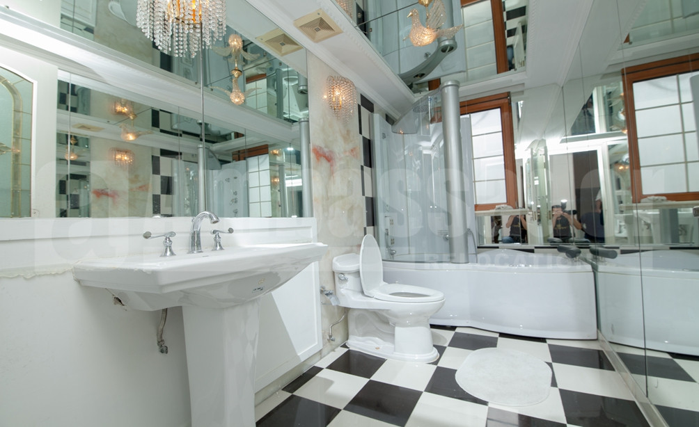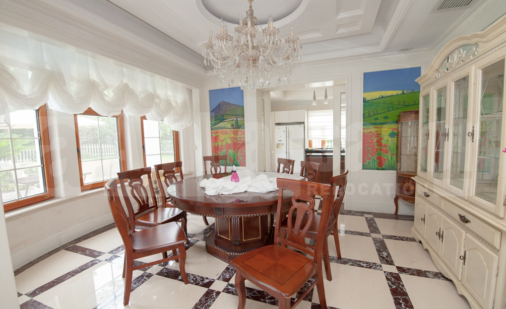 A spacious villa with 4 bedrooms features bright living room fully decorated by high quality western style furniture. Elegant wooden round table placed in dinning room besides a cool half-open kitchen where modern appliance are fully equipped. Large master bedroom with large french window offers a nice view of lush greens outside. Private swimming pool in the garden should be the highlight of this villa.