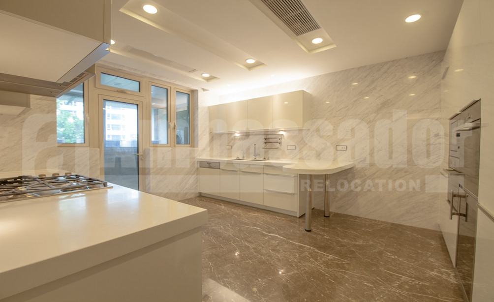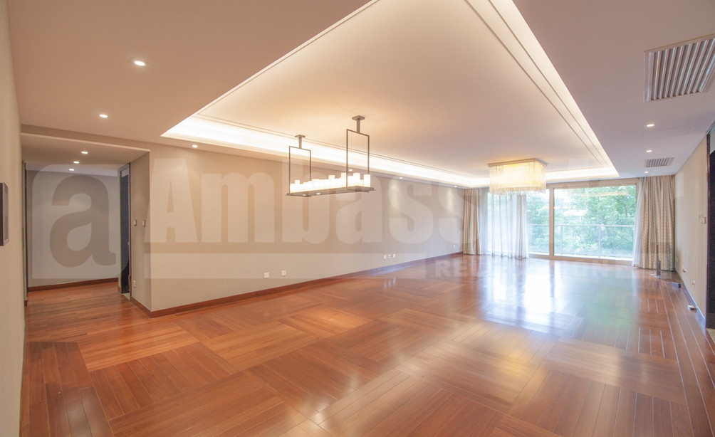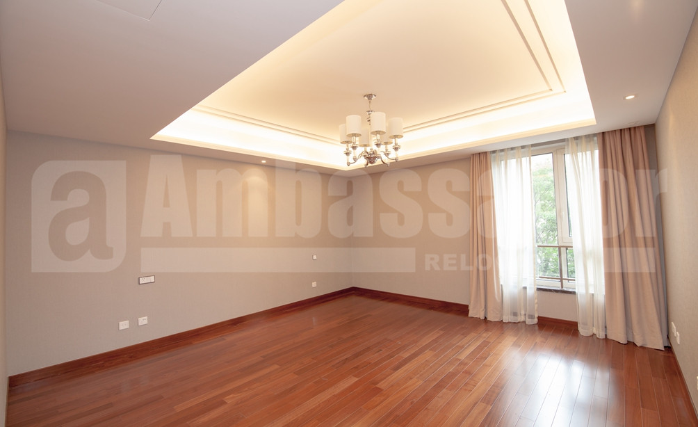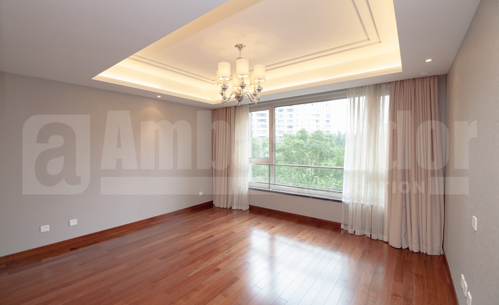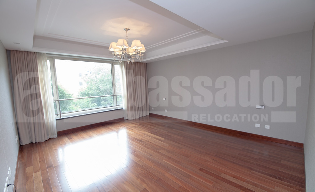 A spacious apartment in Former French Concession enjoys a high green coverage ratio and beautiful surroundings. Bright living room with french window feels airy. Bay windows in the bedrooms offers not only warmth but also a captivating view of compound. Modern kitchen is equipped with modern appliance to meet your daily life. Instead of wood flooring in living room and bedrooms, kitchen and bathroom are marble floored. Wide use of modern lamp with pale yellow light brings both brightness and a homey and warm sense.