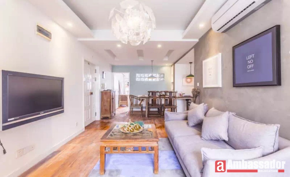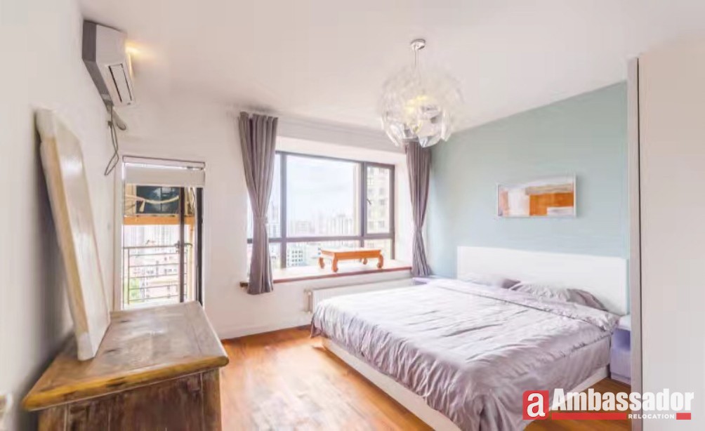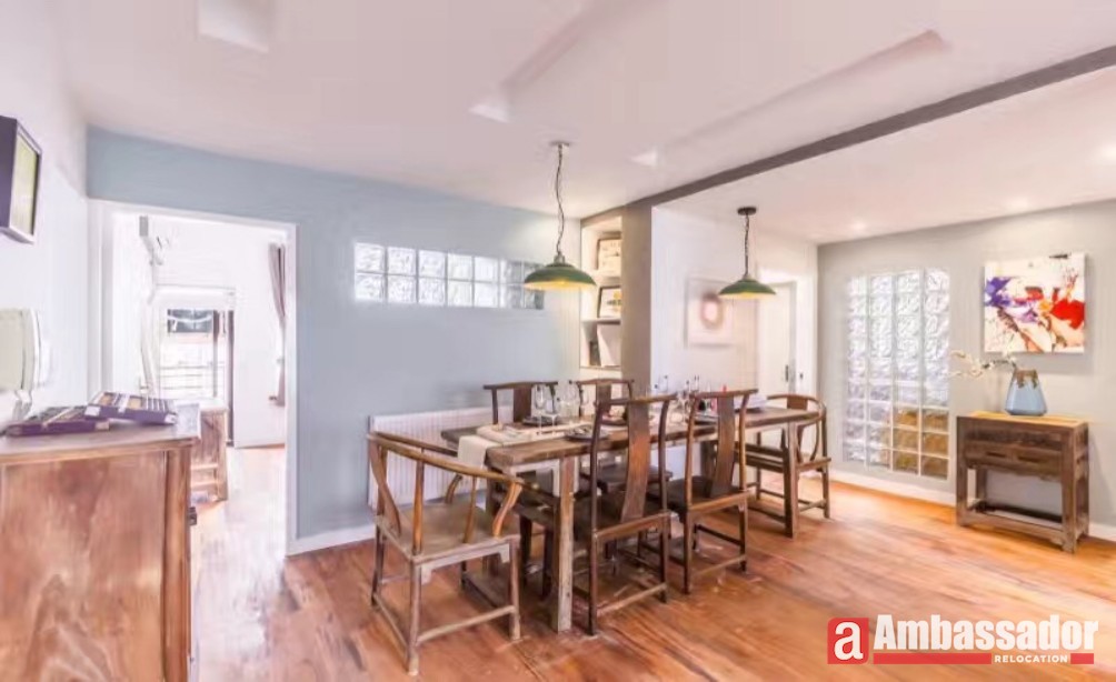 Fully decorated apartment with 4 bedrooms in Huangpu District. Large amount of vintage Chinese elements has been used to in the decoration builds a retro style. The combination of modern and antiqued furniture brings out the beat in each other. French window in the living room and bay window in the bedrooms bring the whole apartment enough warmth and natural light.