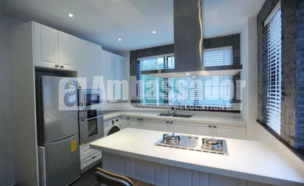 Good quality renovation with spacious layout. Living room and Dinning are located on the 3rd floor. Modern open kitchen is fully equipped. Big island counter, built in oven, refrigerator are all available in the kitchen. Terrace that has skylights is warm and bright, where is a good place for respite.