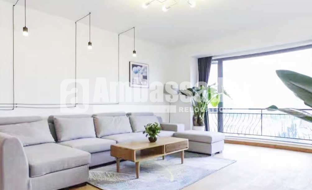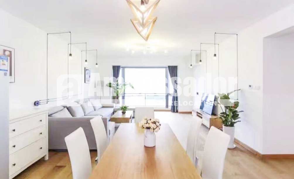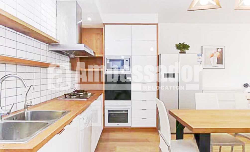 This 4 bedrooms apartment located on a high floor in the building features a spacious living room with french window, a dining room and a fully equipped open kitchen. A modern and cozy life is enjoyed by whole apartment floor heating and wall heating. Furniture and appliances are fully furnished to meet demands of life.