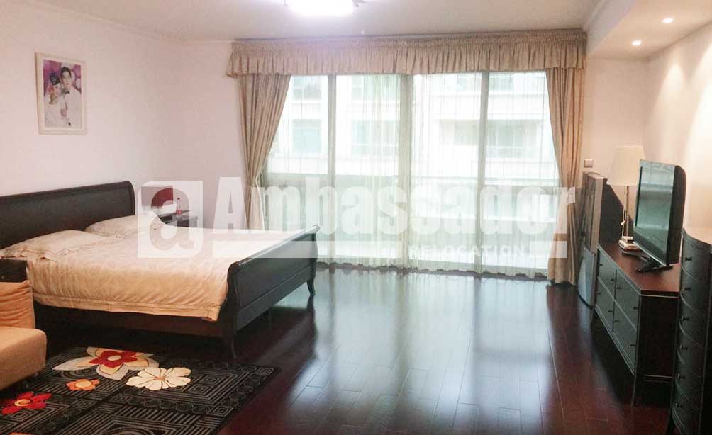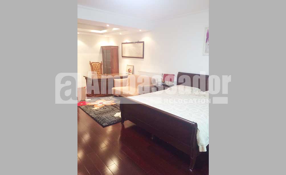 The luxury apartment features a spacious and bright living room with french window connecting to huge balcony with nice view of this compound. High quality furniture well fitted in each room. Balcony also available in bright and airy bedroom. Elegant wood flooring spread all over the apartment.