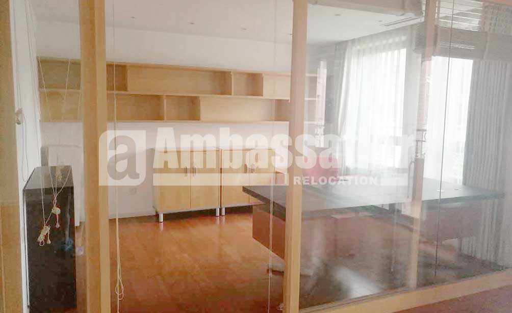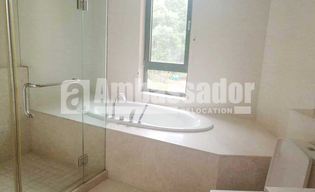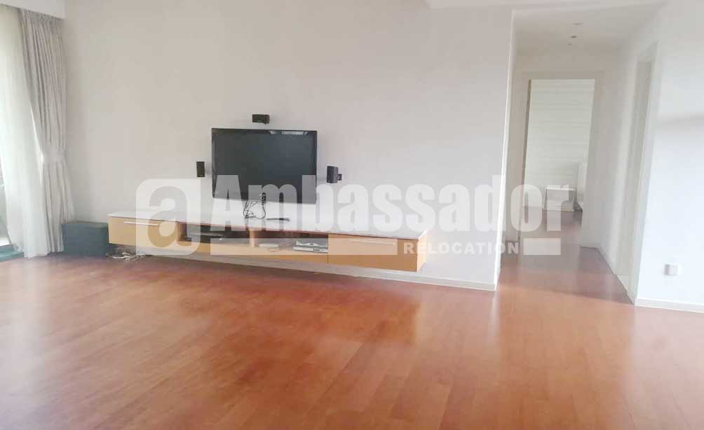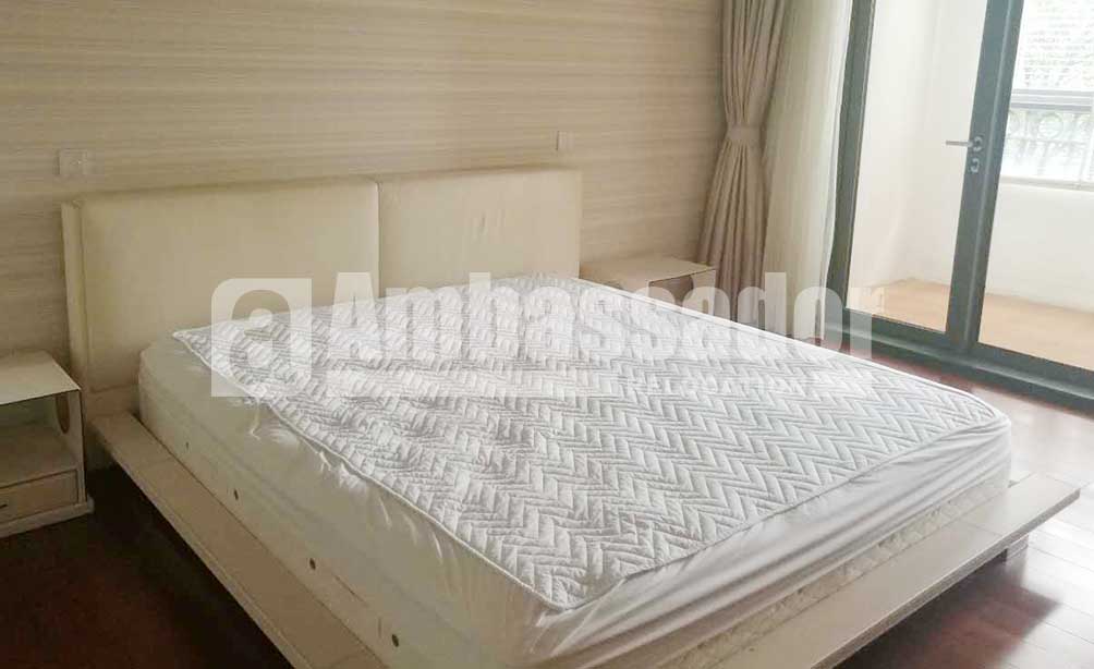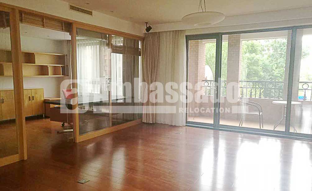 A three - bedroom apartment in this compound. Elegant wood flooring applied in each room. Balcony and french window available in both living room and bedroom offer bright and warmth. A bright study beside the living room provide independent space for working or learning. A big tub in the bathroom.