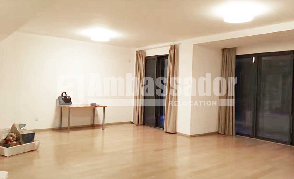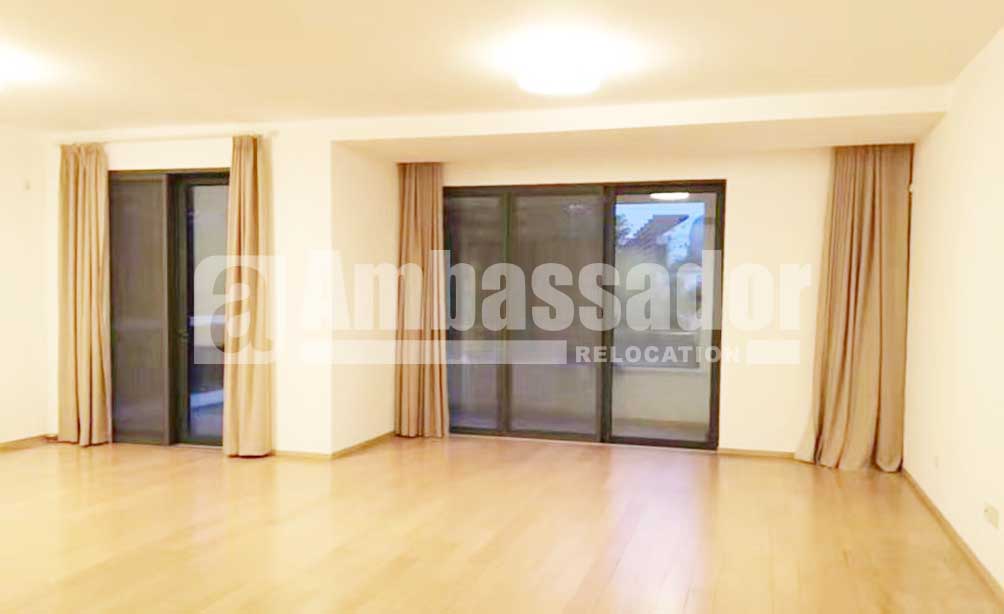 Located in the a quiet and green residence in Minhang District, this apartment facing the artificial lake provides a beautiful view of this compound. Elegant wood flooring is covered throughout the property. Spacious living room with large French window is flooded natural light and airy. Washing machine and refrigerator are available now.