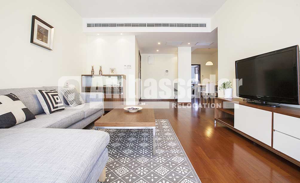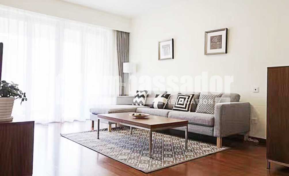 A spacious apartment located in a high end community, facing Biyun International Community on the east and Lujiazui CBD on the west, providing a convenient and cozy life with many excellence facilities. Bright living room equipped with fine furniture is in the neutral decoration, bringing abundant natural light through large French window. Generous bedroom with soft bed adds sleeping enjoyment. Cool kitchen fully equipped with western styled appliance makes it easy for cooking. Elegant wood flooring under good maintenance spread through the whole house.