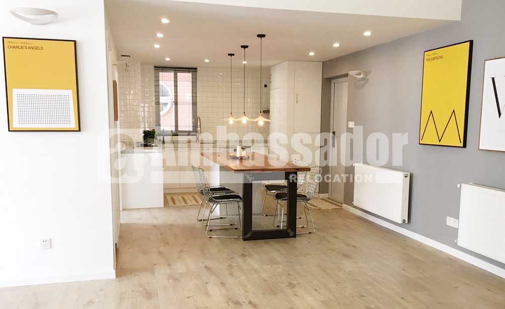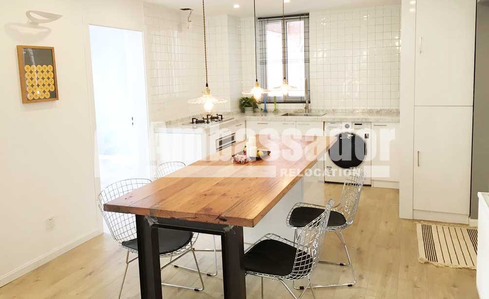 Located on South Shaanxi Road, easily accessing to Metro Line 9 & 12, this house is only few minutes’ driving to Xujiahui CBD and a block away from SML Center. Decorated with pastoral styled furniture, this house boasts a natural and cozy atmosphere. Cool open kitchen is fully equipped with fine appliance and a spacious dinning area with bench is within arms’ reach. Bedrooms with steel windows flooded with natural light provides abundant warmth and bright. Wooden flooring under well maintenance spread all over the house.