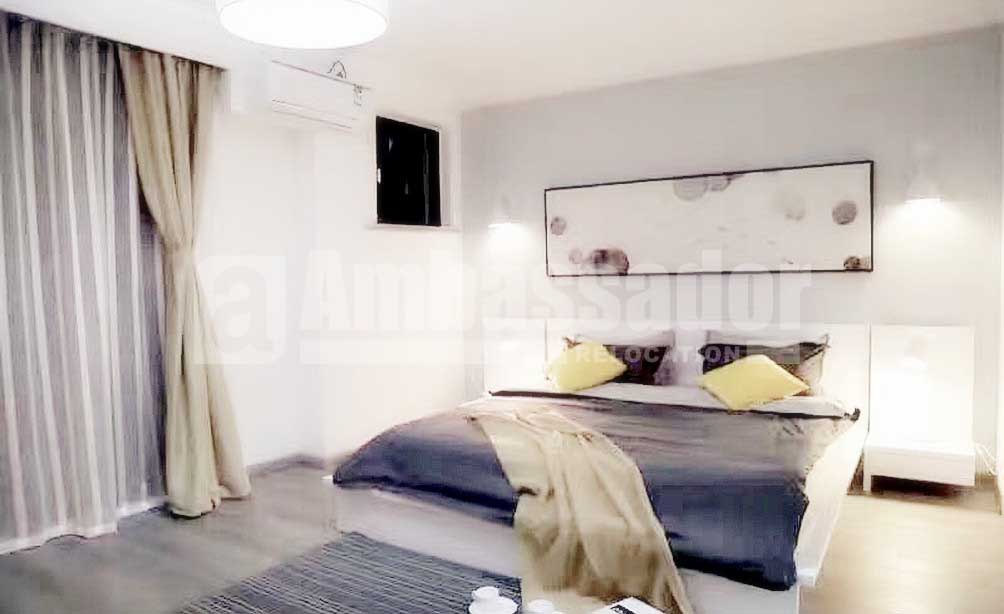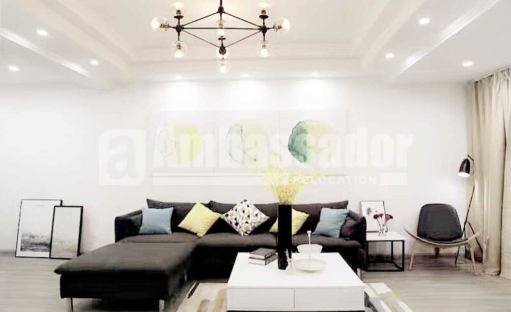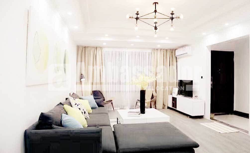 This is a four bedroomed villa in Minhang District with convenient transportation link. Elegant wooden floor with heating spread all over the house. Neutral decor with modern and stylish furniture in high quality brings a homey and warm feel. Well airing and lighting offers a comfortable and cozy living environment.