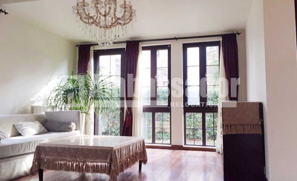 This amazing four bedroomed villa with luxurious decoration offers ample living space, manicured garden and off=street parking area. Stunning master room with walk-in cloakroom is well located on the second floor, enjoying a wonderful view standing on the large balcony. Real fireplace offers warmth in cold winter. Facing Shanghai American School, this property is especially suitable for those who have children.