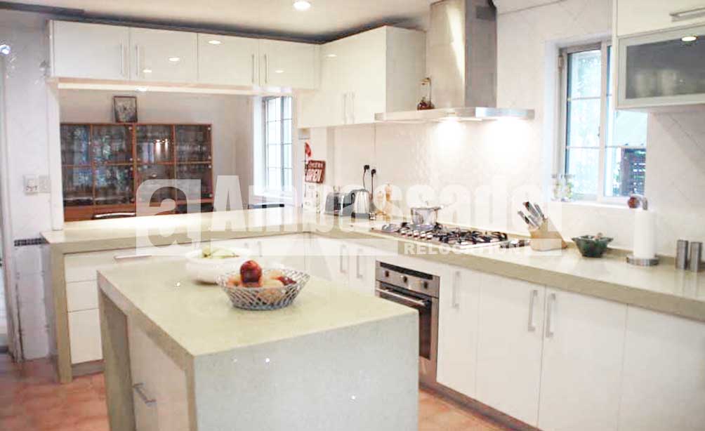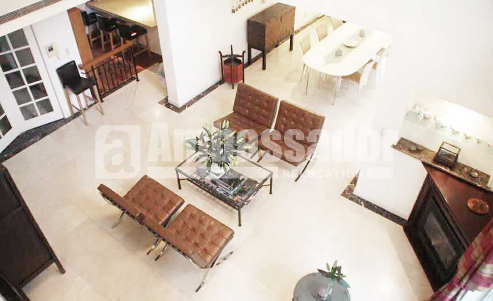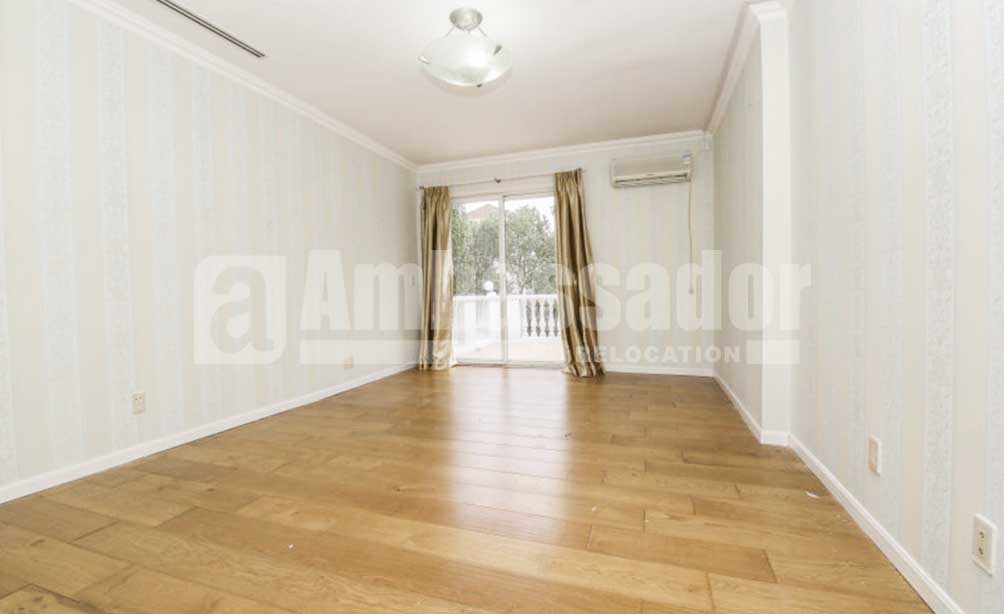 A detached house with large garden in a famous compound is just renovated with floor heat installed and new wall paper/curtains. Health club and swimming pool is a few minutes walk away and there is a shuttle bus that goes to the subway station and to the super market, making it convenient for the helper.