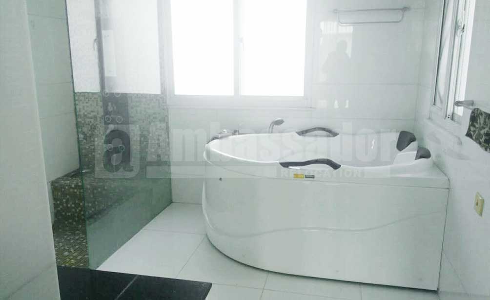 This is a sizeable house in Pudong New Area with 5 bedrooms offers ample living space with en suite bedrooms, private garden and off-street parking. It’s very suitable to those who has own car and prefer to living in big house. Large French windows bring abundant warm sunlight into this property. Furnished by branded furniture and high-end appliances offers residents a high level life.