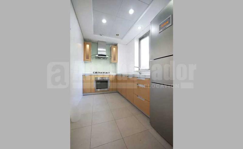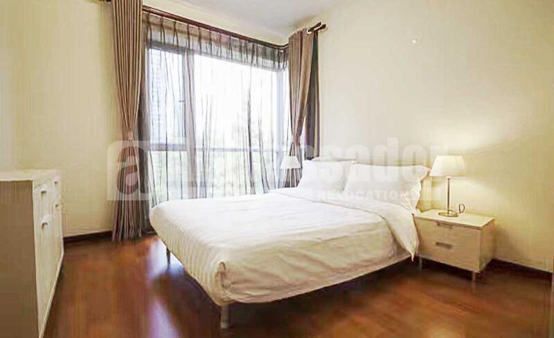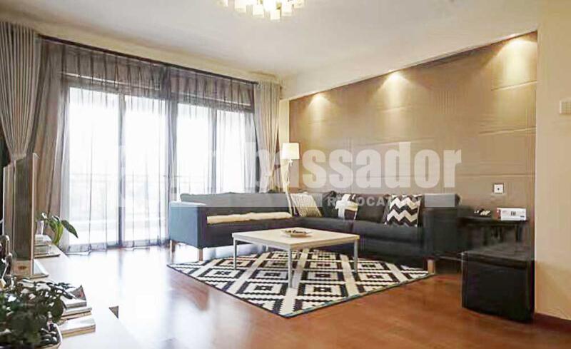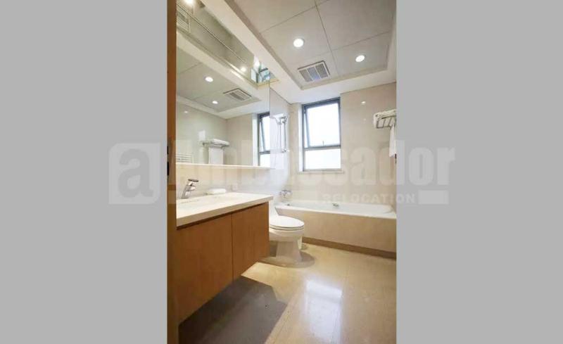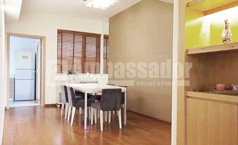 An ample 4 bedroomed apartment in Pudong New Area provides residents comfortable and convenient life with high quality furniture. Modern and stylish living room link to a useful balcony is bright and airy with natural light. Outside the fully equipped kitchen with built-in oven, a dinning area is well equipped with long bench. Bedrooms with French window brings a nice view of this compound. Floor heating system and central air-conditioning are available.