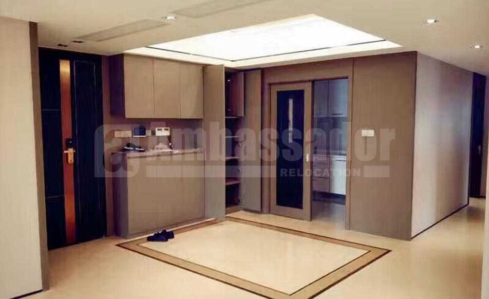 A newly decorated but no furniture apartment in Gubei International Community offers high technology like whole house flooring heating system and advanced fresh air purification. With four bedrooms, this apartment is spacious enough for big families. Built-in oven and some other high-end appliance is available in the kitchen. Tub in one bathroom adds bathing enjoyment.