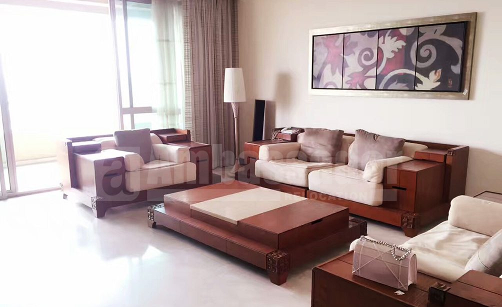 A magnificent apartment furnished with simple color blocks and square angular furniture. There is a sweet living room decorated with pleasing country style. Broad French windows make this apartment full of warm sunshine. Lay out of the apartment like this is rare to find. It owns 4-bedroom on one floor.