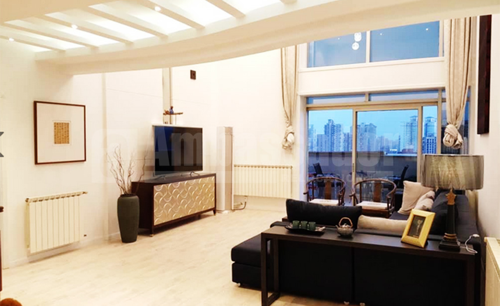 A fabulous air villa located in the former French Concession, furnishing with Chinese classical furniture and comfortable fabric sofa. The villa was newly decorated with wall heating. Its superior location and 28 square meters of balcony enable you to overlook a marvelous view of the city.