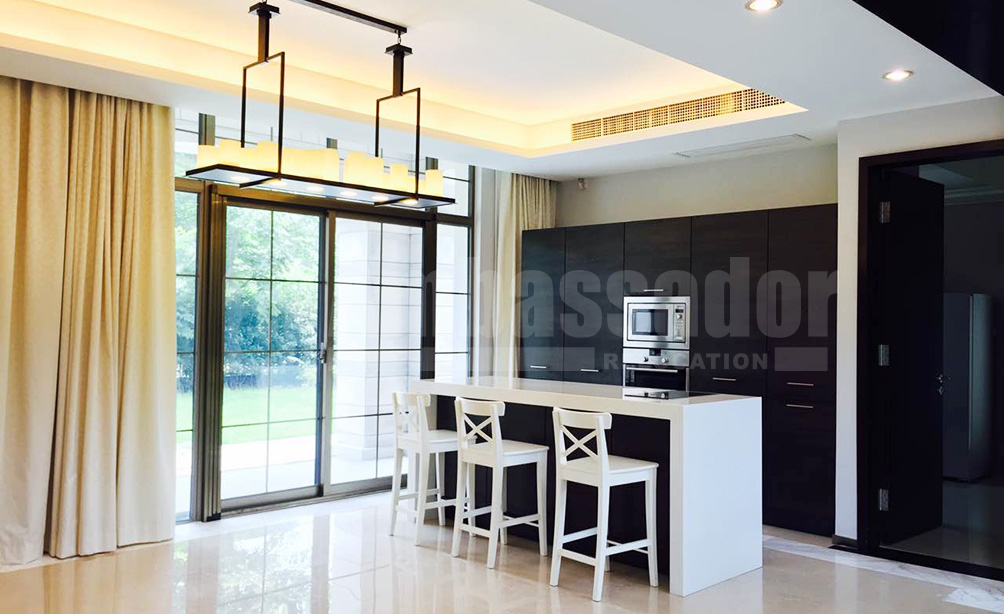 A cool villa located on the Longdong Avenue, the Pudong villa residential area. A mature golf villa compound for the golf lovers. The villa was newly designed with smooth and clear contour and equipped with stylish white and dark furniture.It has a 500 square-meter garden, which provide you a wonderful land for outdoor activities and beautiful landscape. Partly furnished including controlled central air conditions and floor heating.