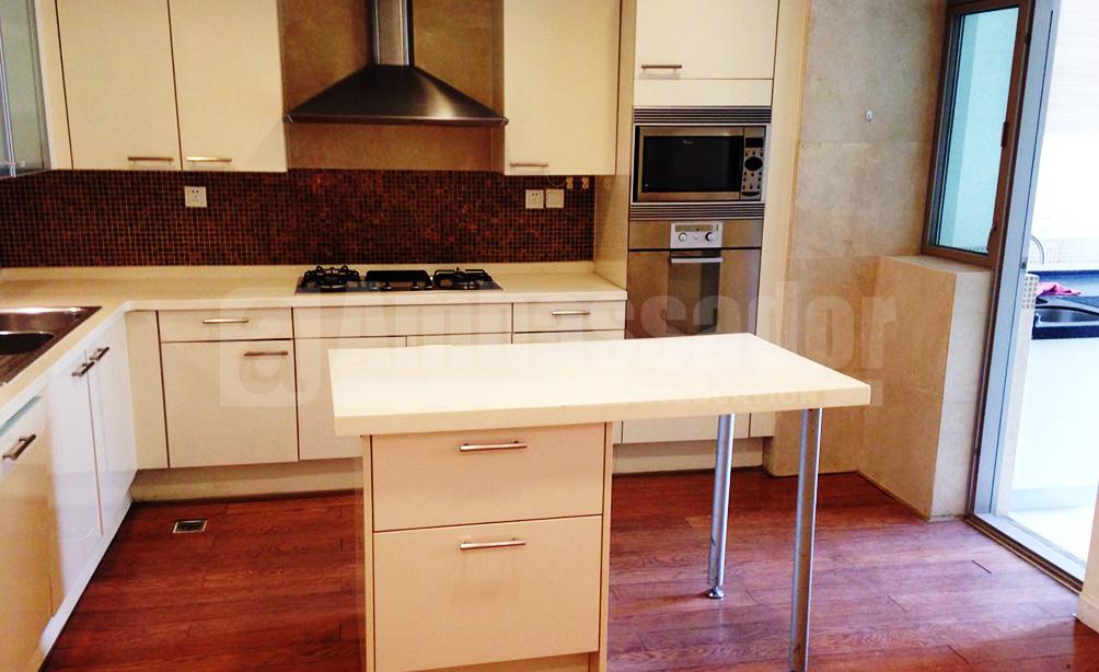 This 290 square meters 3Br apt is located inside The Green City expat community, Pudong. It owns a shallow lake and green scenery beside the apartment. You can enjoy it through the Broad French windows. Furnishing with luxurious European classical furniture. Besides, there is a private and beautiful kitchen for cooking.