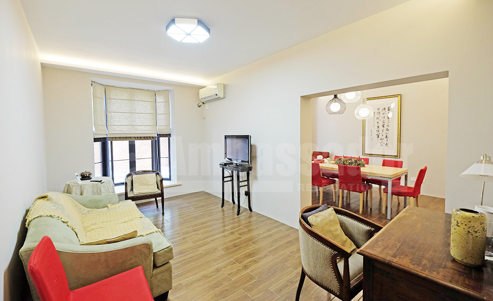 A beautifully presented lane house located in the former French Concession. It is decorated with quaint color furniture, including elegant green sofa and red chairs. Light color wooden cabinets and floor feature the house.Besides, there is a 30 square meters private garden. You will get a perfect place to enjoy your leisure time.