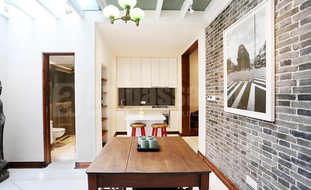 A fabulous lane house located in the most prosperous business area, close to the hottest spot-Jing'an Temple. The house is delicately decorated with brick walls beside the dinning room and a bedroom. High quality wooden furniture includes beds, tables and chairs. What's more, the house provides a private parking space, Comfortable furniture and well-designed lay out of different functional rooms make this house an ideal one for you.