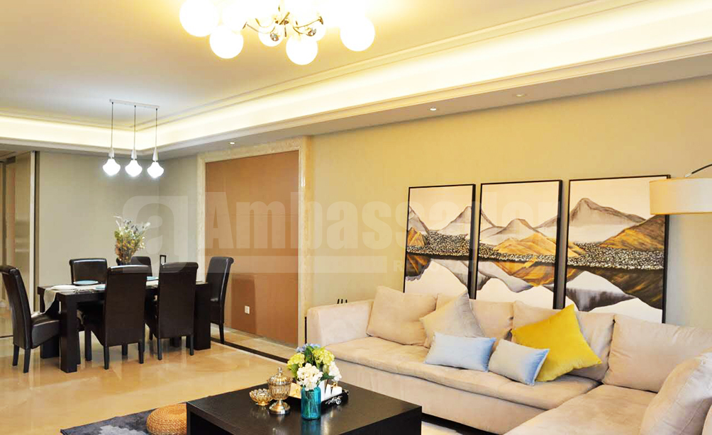 This finely decorated new apartment is located on Puming Road..It is well-equipped with central air conditioning, wall and floor heating. The floor is covered with luxurious marble tiles. The house is decorated with warm color wall papers,comfortable fabric sofa and soft beds. Besides, there is a balcony for you to have a rest with fresh air.
