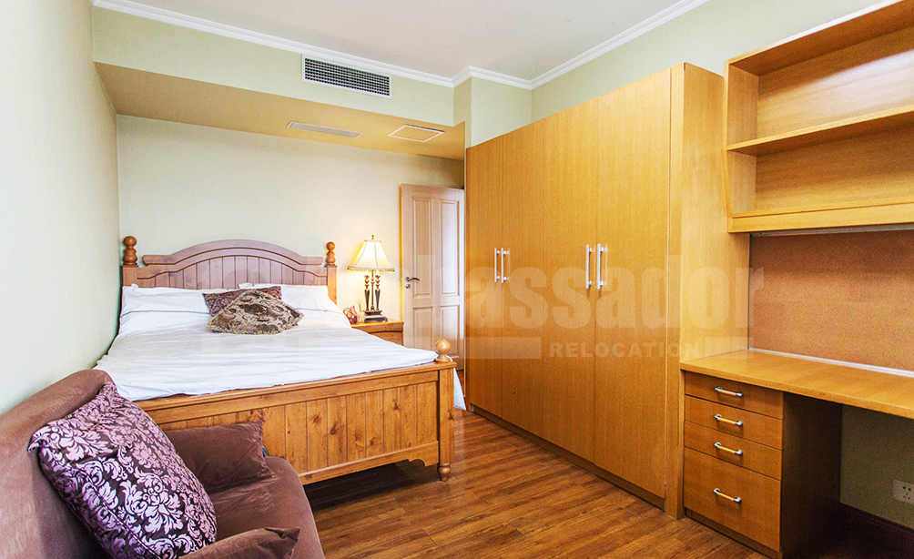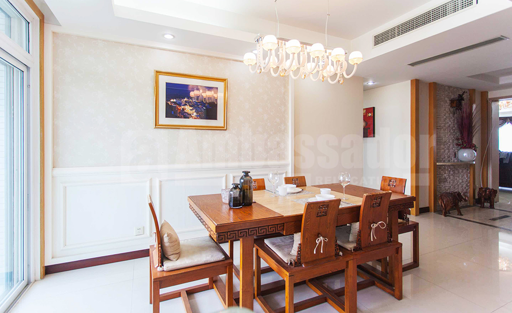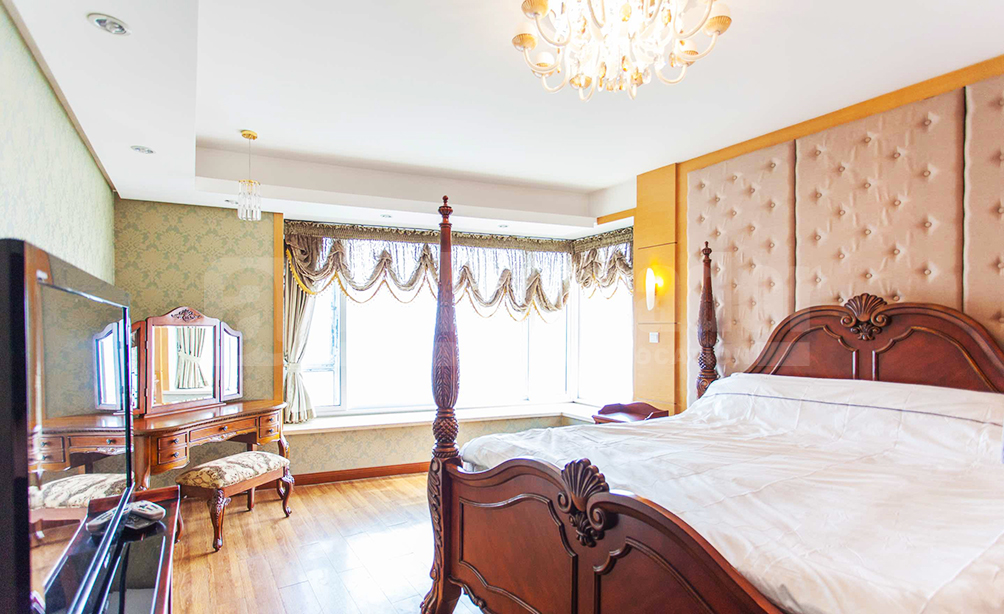 A 4-bedroom apartment enable you to enjoy an unblocked high floor view to Century Park and Lujiazui skyline. This apartment is decorated with luxurious style and furnished with imported furniture with floor heating system and double layer window shield in every room, which keeps room even more quiet and clean. 7 minutes walk to metro Line 2 and 2 minutes walk to Line 7. Gym, swimming pool, tennis/basketball court, children’s play ground in the compound, with Century Park as backyard. International kindergarten next door and close to international schools. Restaurants and shops nearby. Cross-street is Kerry Parkside shopping mall which is becoming a new hot spot for expats in Shanghai. Fully furnished with all appliances (double door large refrigerator, large screen Sony TV, high quality stereo systems), wifi, high quality furniture, A/C, Floor heating, etc.