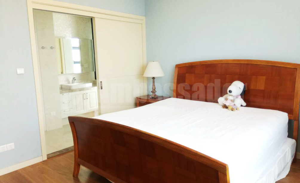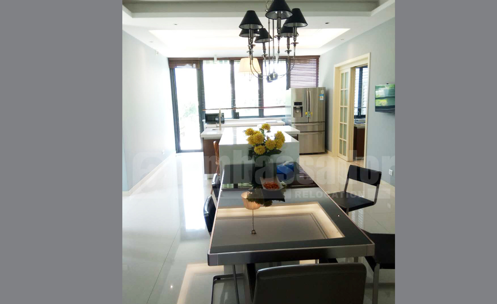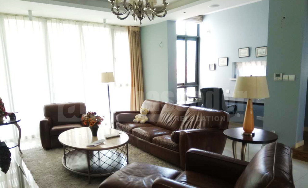 A 4-bedroom villa is beautifully decorated with light blue paintings and sweet style of bedrooms. Living room is furnished with comfortable cortical sofa and a white carpet. Broad French windows in every room make this villa light. There is a terrace, which offers you a pleasing overlooking view. This villa will be a sweet house for families especially for those with kids.