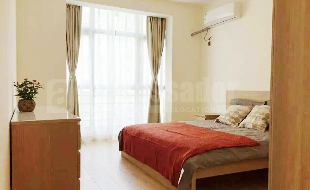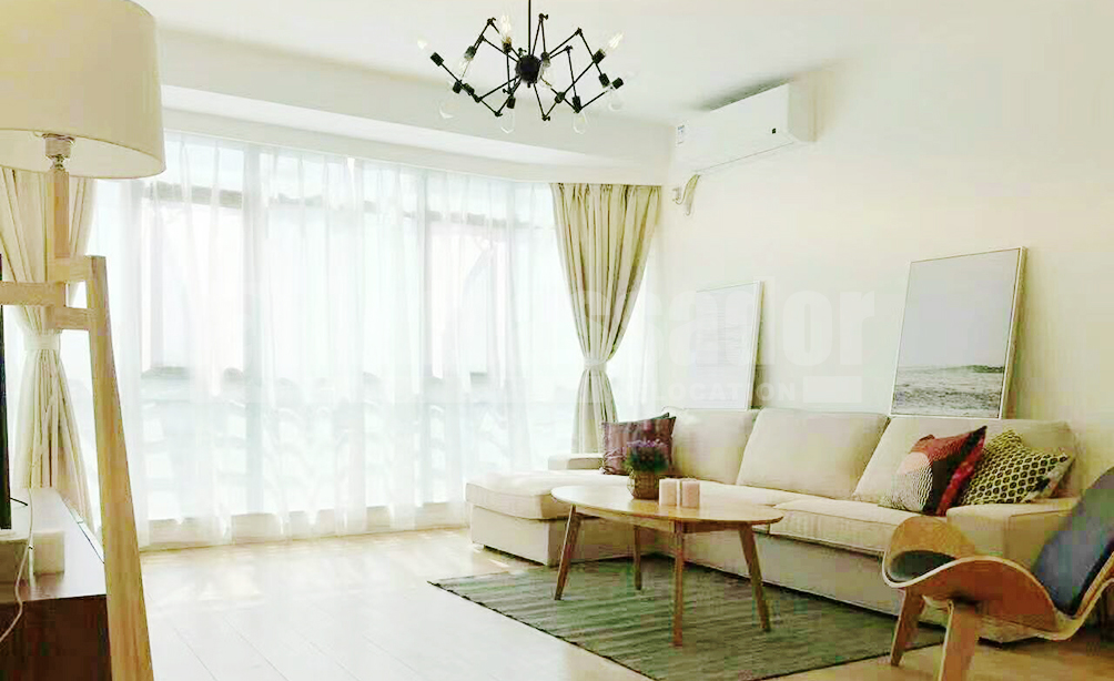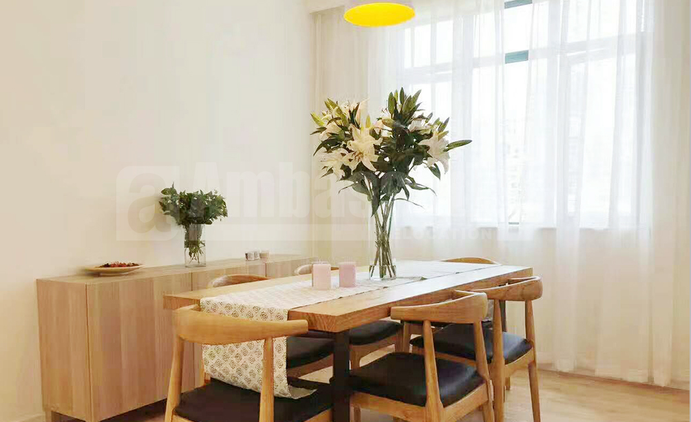 A fantastic 3-bedroom apartment located on Changning Road, 3 minutes walk to the metro line 2, line 3 and line 4 and shopping mall-Cloud Nine and Zhongshan Park. The apartment is fully furnished with stylish and natural wooden IKEA furniture and equipped with floor heating, oven, dishwasher, embedded oven, etc. The community provides private recreational club, which includes constant-temperature swimming pool, gym and tennis court.