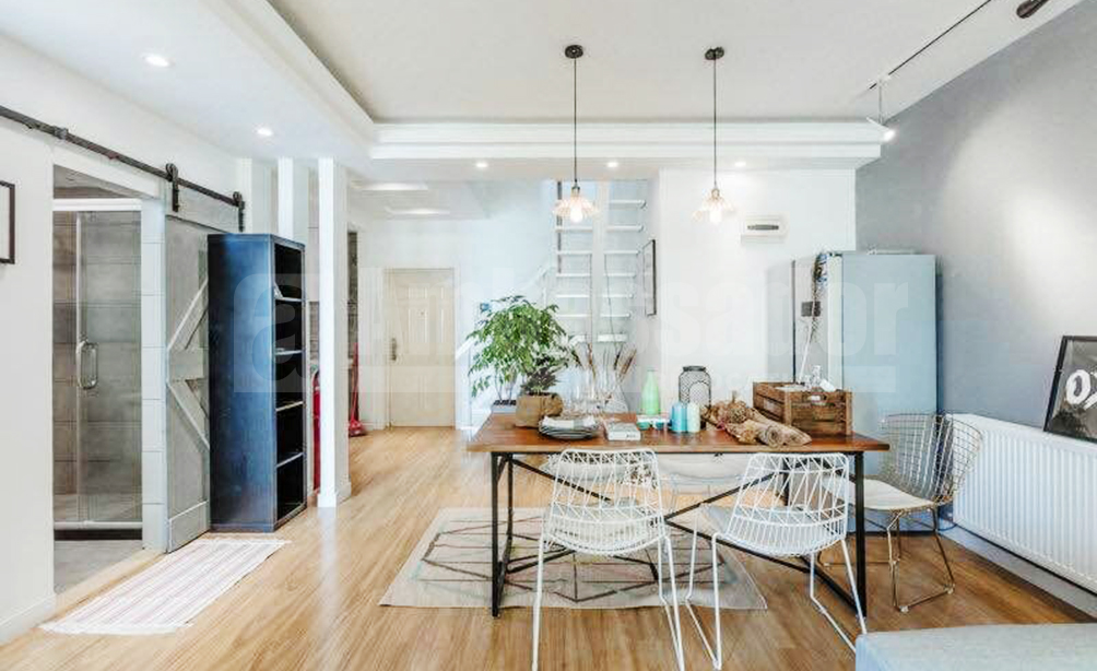 This is a stylish 4-bedroom loft apartment located on West Huaihai Road, 7 minutes walk to the metro line 10 and line 11. 10 minutes walk to the shopping mall-Plaza 66. The apartment is newly decorated with IKEA furniture and equipped with wall heating, bathtub. There are sizable drawing room, dinning room and open-plan kitchen.