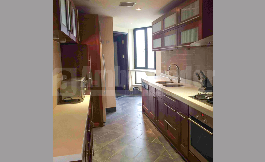 A spacious and bright 4-bedroom apartment located on Xingfu Road. 5 minutes walk to the metro stations of line 10&11. This apartment is fully furnished and equipped with floor heating, central air-conditioning and bathtub. You will own a great high-rise view. Besides, there are many restaurants around the compound.