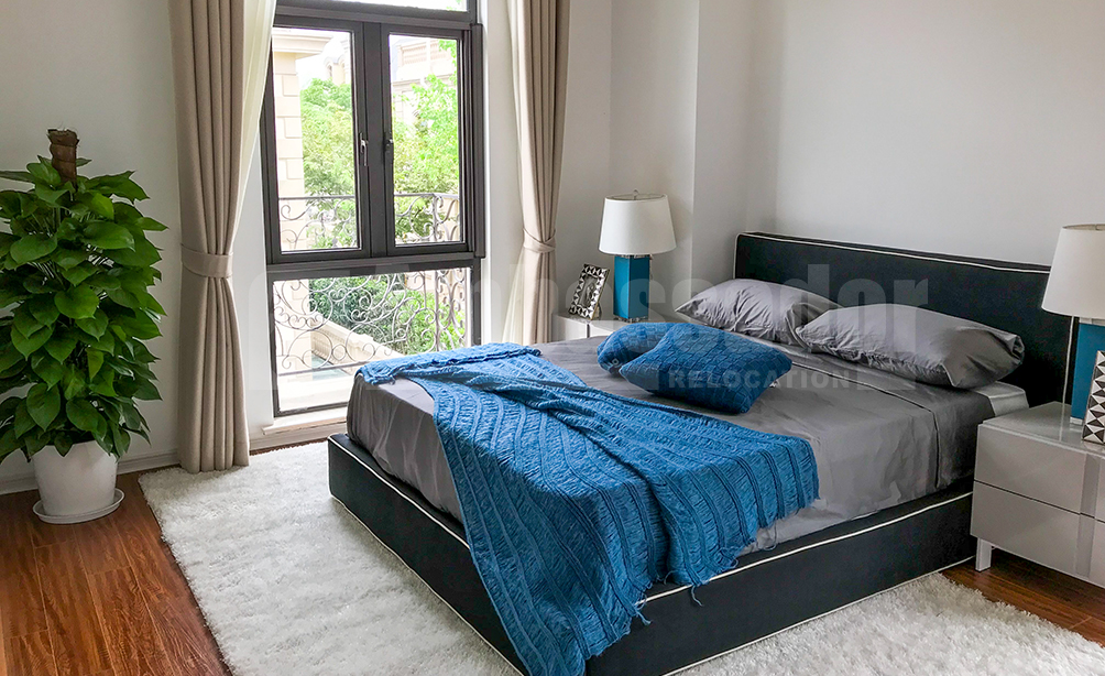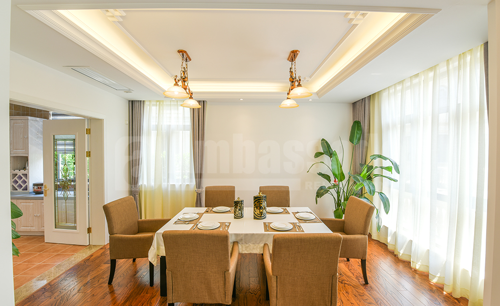 A deluxe 4-bedroom villa located on Jinguang Road in Minhang district. 15 minutes drive to Hongqiao transport hub. This upscale compound provides mature and thoughtful services including multifunctional clubs, great residential environment and so on. The villa is within 10 minutes walk from International schools and 10 minutes drive to golf clubs and hospital. The villa is fully furnished and equipped with floor heating.