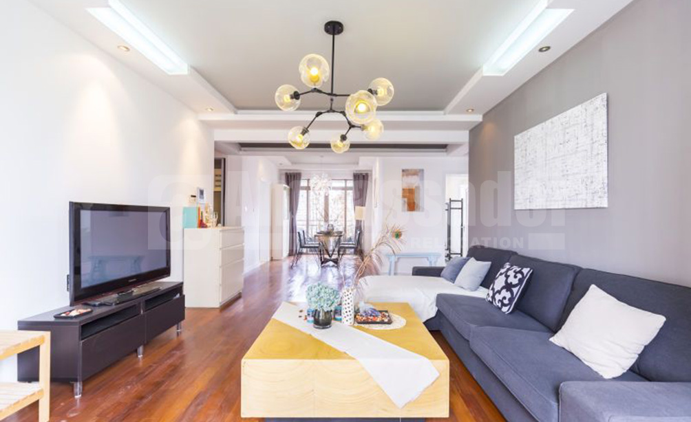 A newly renovated 4-bedroom apartment located on West Beijing Road in Jing’an district. 5 minutes walking distance from Xinzha Road Station of metro line 1. 8 minutes to Nanjing Road Pedestrian Street. It is a place where assorted shopping malls, restaurants, bars, cafes, recreational clubs are gathered. This apartment is newly furnished with stylish furniture and fully equipped with oven, dishwasher, etc..