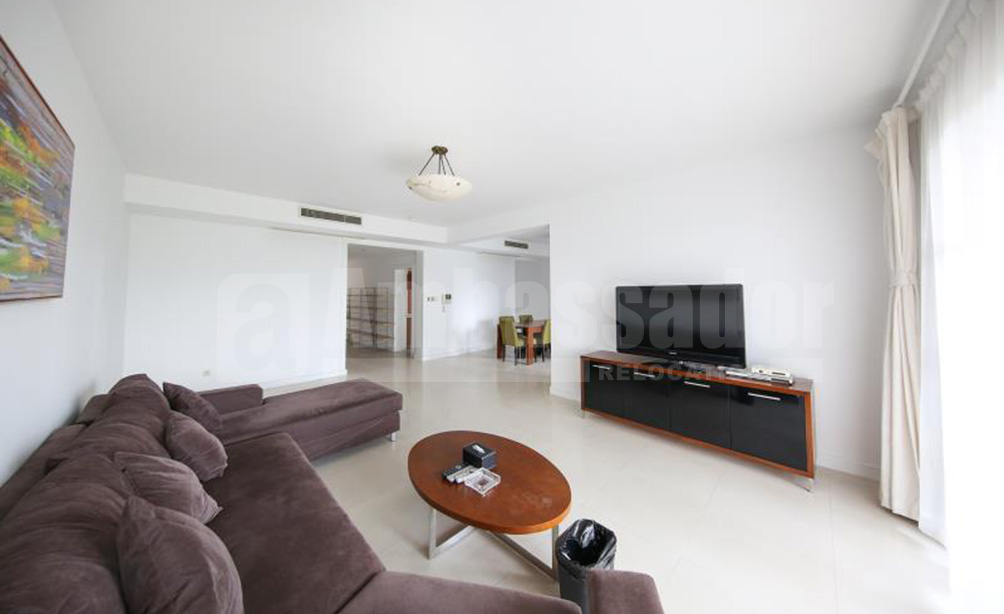 A bright and spacious 4-bedroom apartment with great landscape from its balcony and windows. It is located on Puming road in Pudong district. 7 minutes walking distance from Shangcheng Road station of metro line 9 and The First Yaohan shopping mall. It is easy access to restaurants, bars, cafes around the compound. The compound is equipped with club house including indoor swimming pool, rock climbing court and golf club. This apartment is fully furnished and equipped.